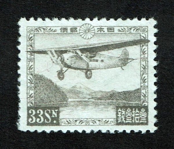 1929年  航空切手 芦ノ湖航空 33.0銭 糊落ち 未使用