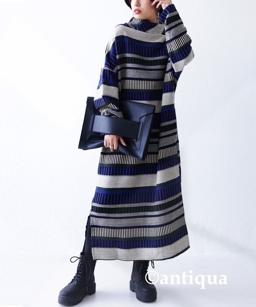「antiqua」 「patterntorso」長袖ワンピース FREE ブルー系その他 レディース