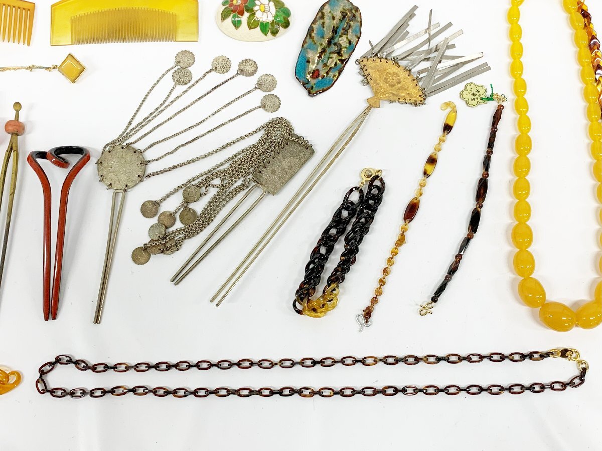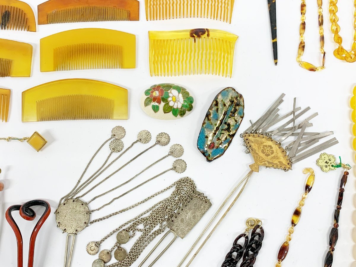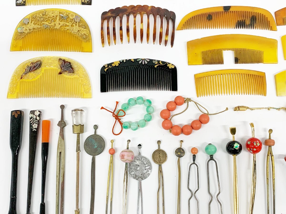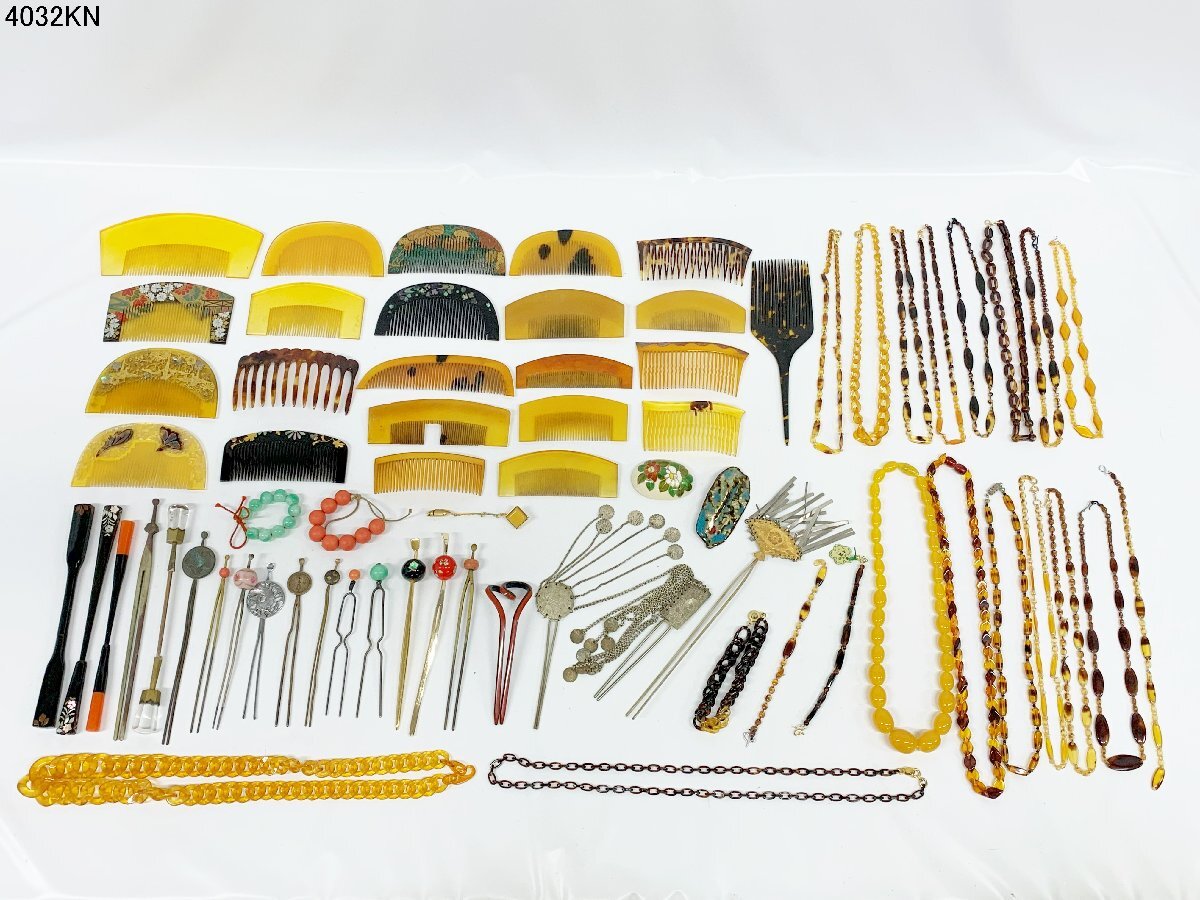 かんざし 櫛 ネックレス ブレスレット ブローチ 帯留め 大量 おまとめ 鼈甲 べっ甲 玉かんざし 笄 髪飾り 和装小物 アンティーク 4032KN-3