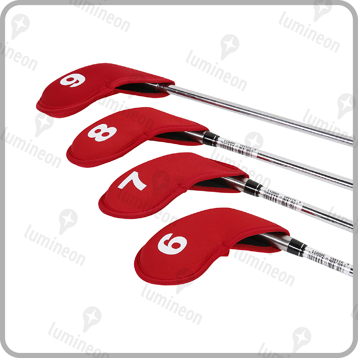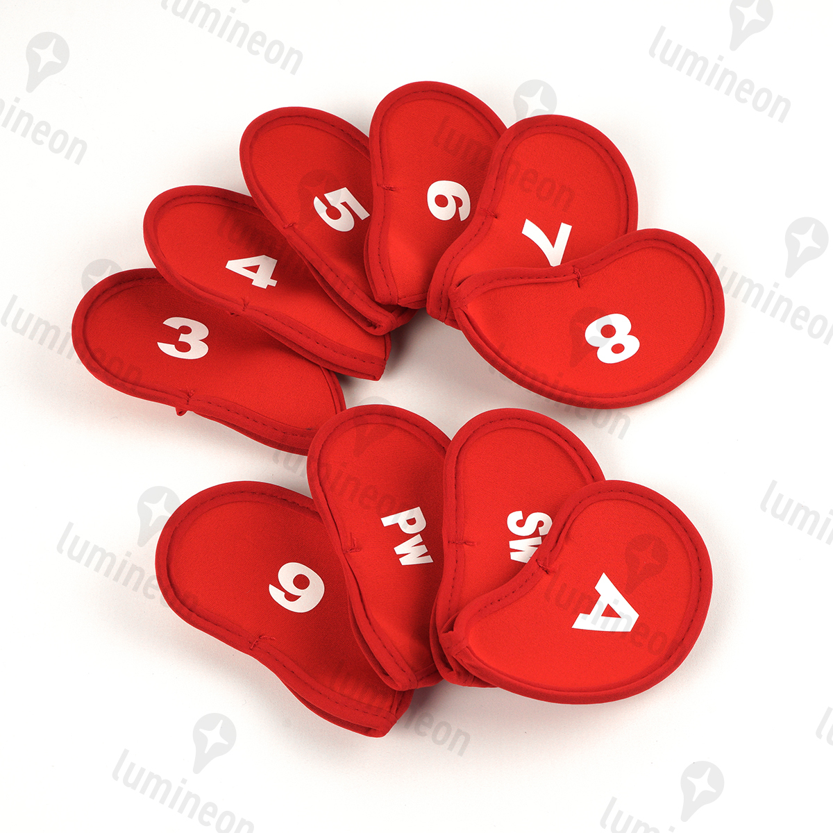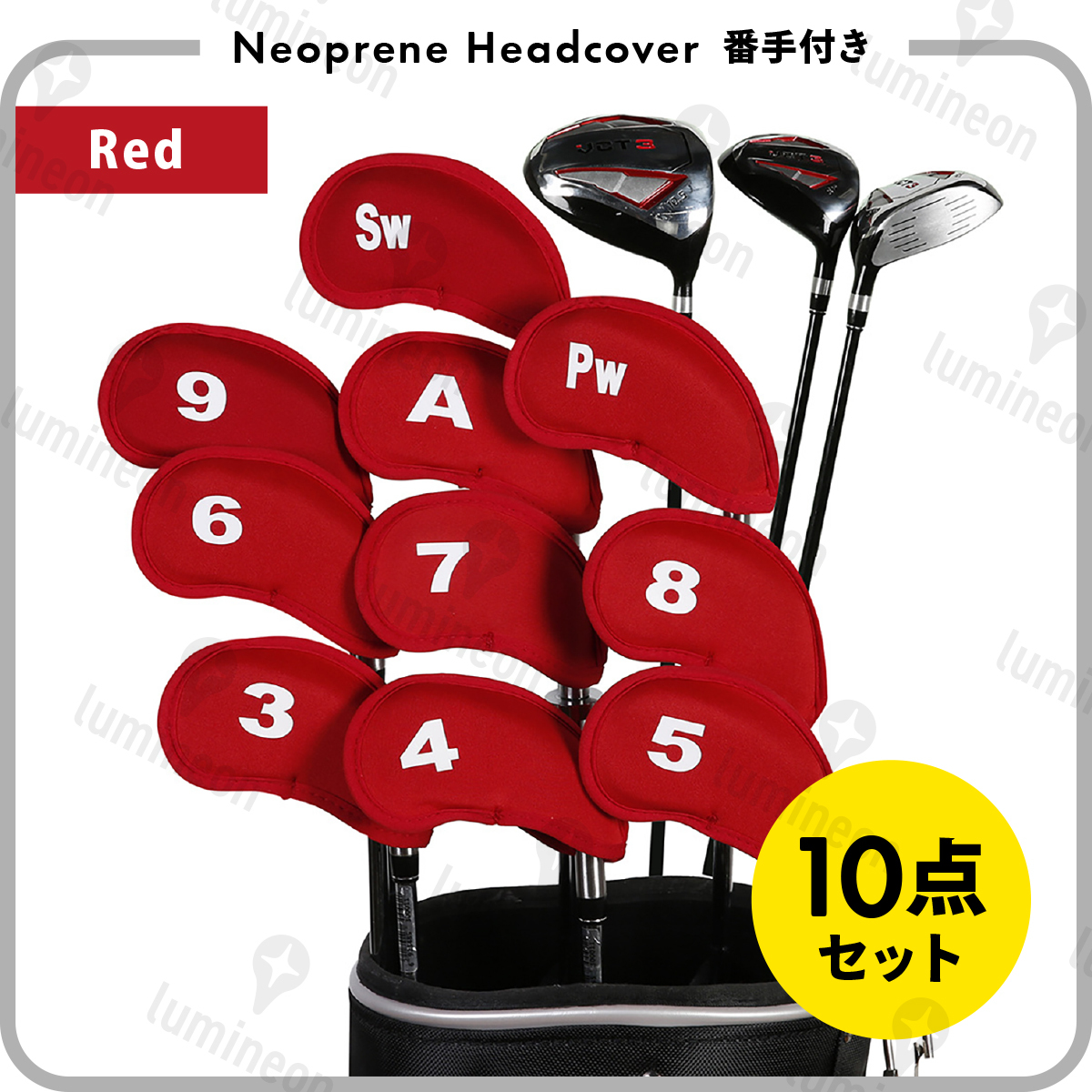 アイアン カバー ヘッド 10点セット 赤 レッド コンペ ゴルフ クラブ フード 番手付き シンプル おしゃれ 保護 安い 景品 小物 g034e