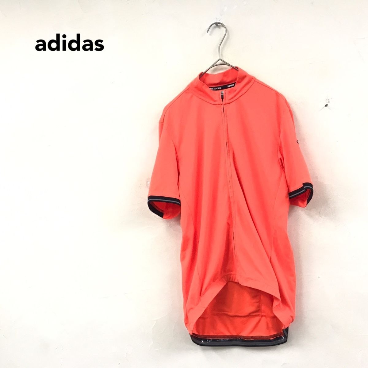 2K1671-N◆ adidas アディダス サイクルジャージ 半袖 フルジップ ロードバイク ◆ オレンジ系 蛍光 吸水速乾