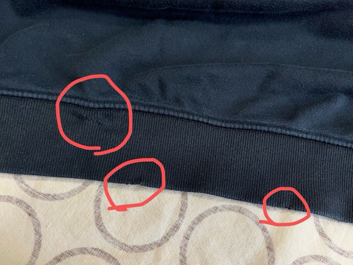 上記にもありますが。前面裾に補修跡があります(写真参照)ご了承下さい。