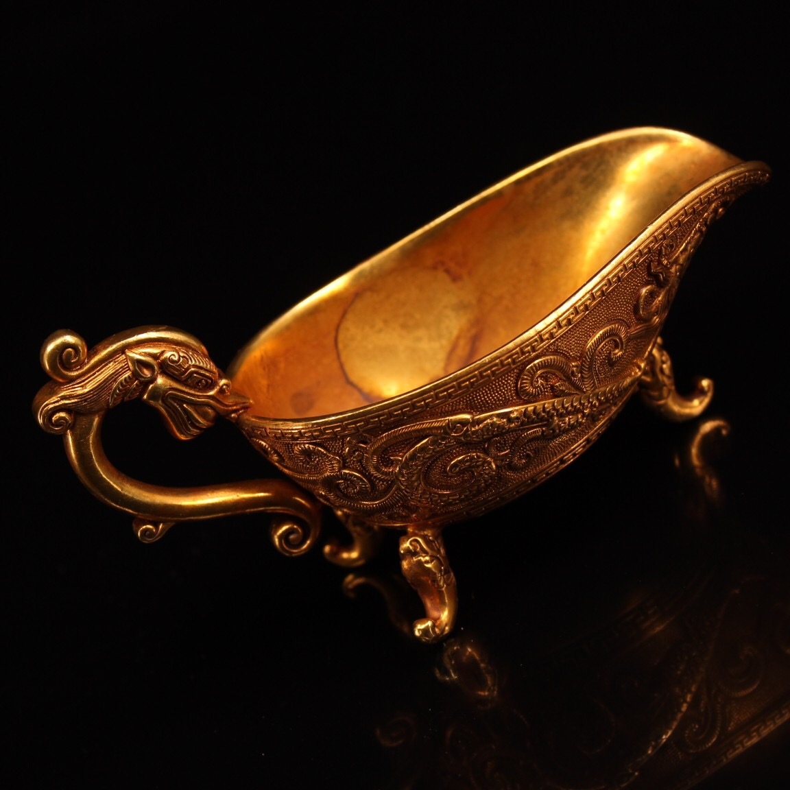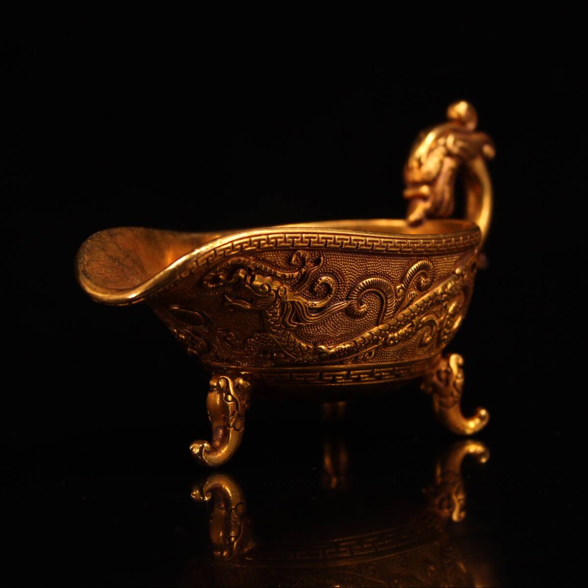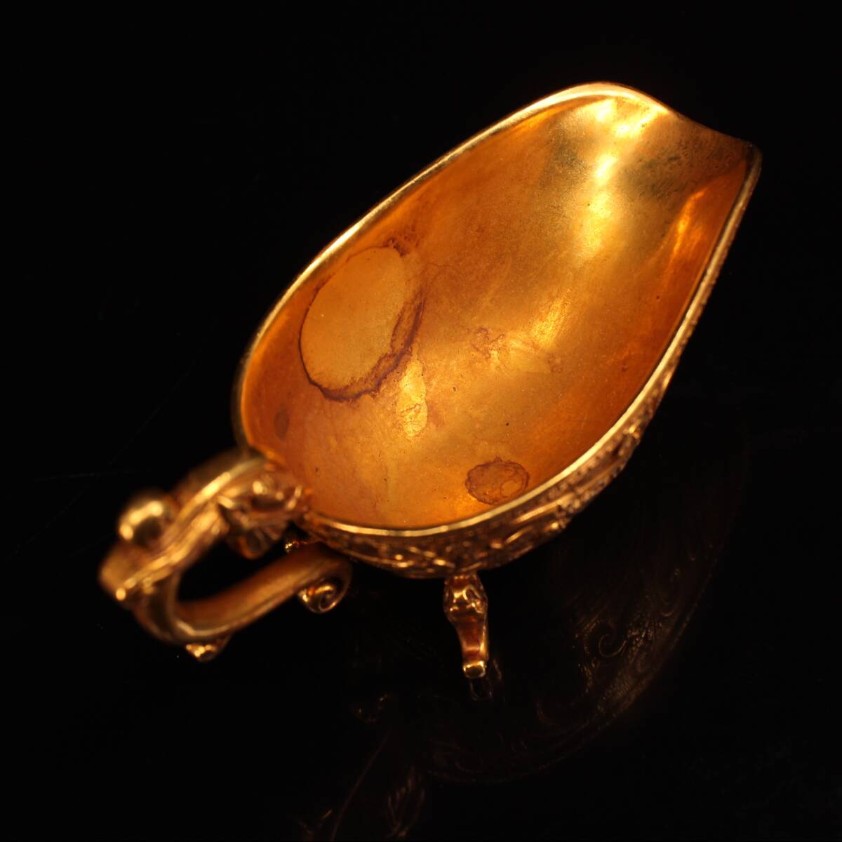 | 【蔵友館蔵品・銅製・塗金・三足杯・置物・賞物】・古董品・中国古玩・時代物・希少珍品・中国時代美術 |