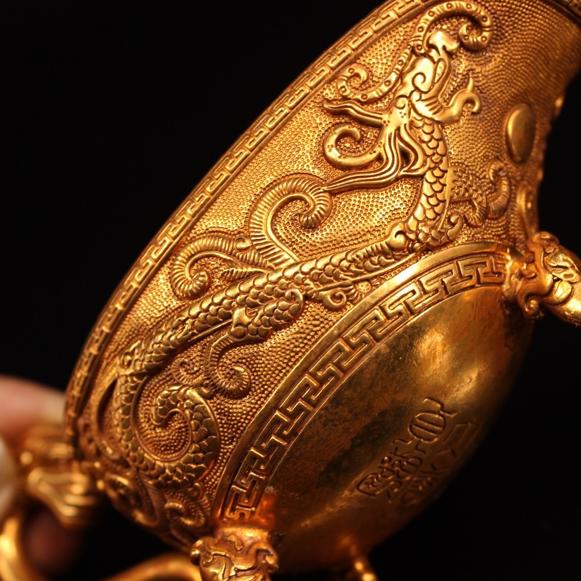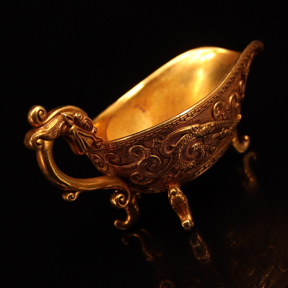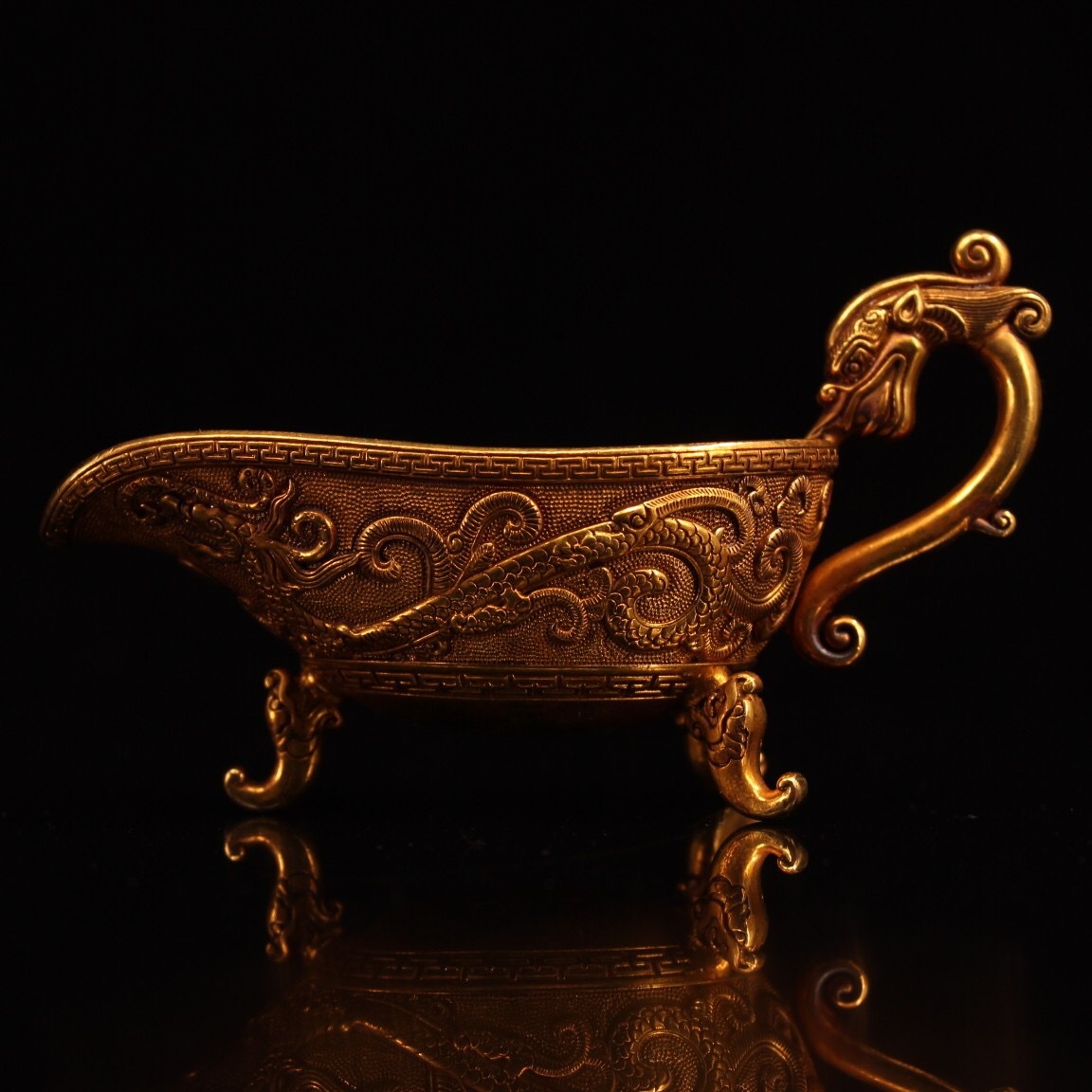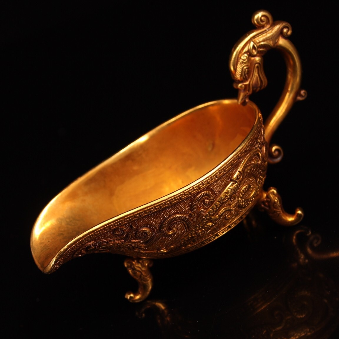 | 【蔵友館蔵品・銅製・塗金・三足杯・置物・賞物】・古董品・中国古玩・時代物・希少珍品・中国時代美術 |