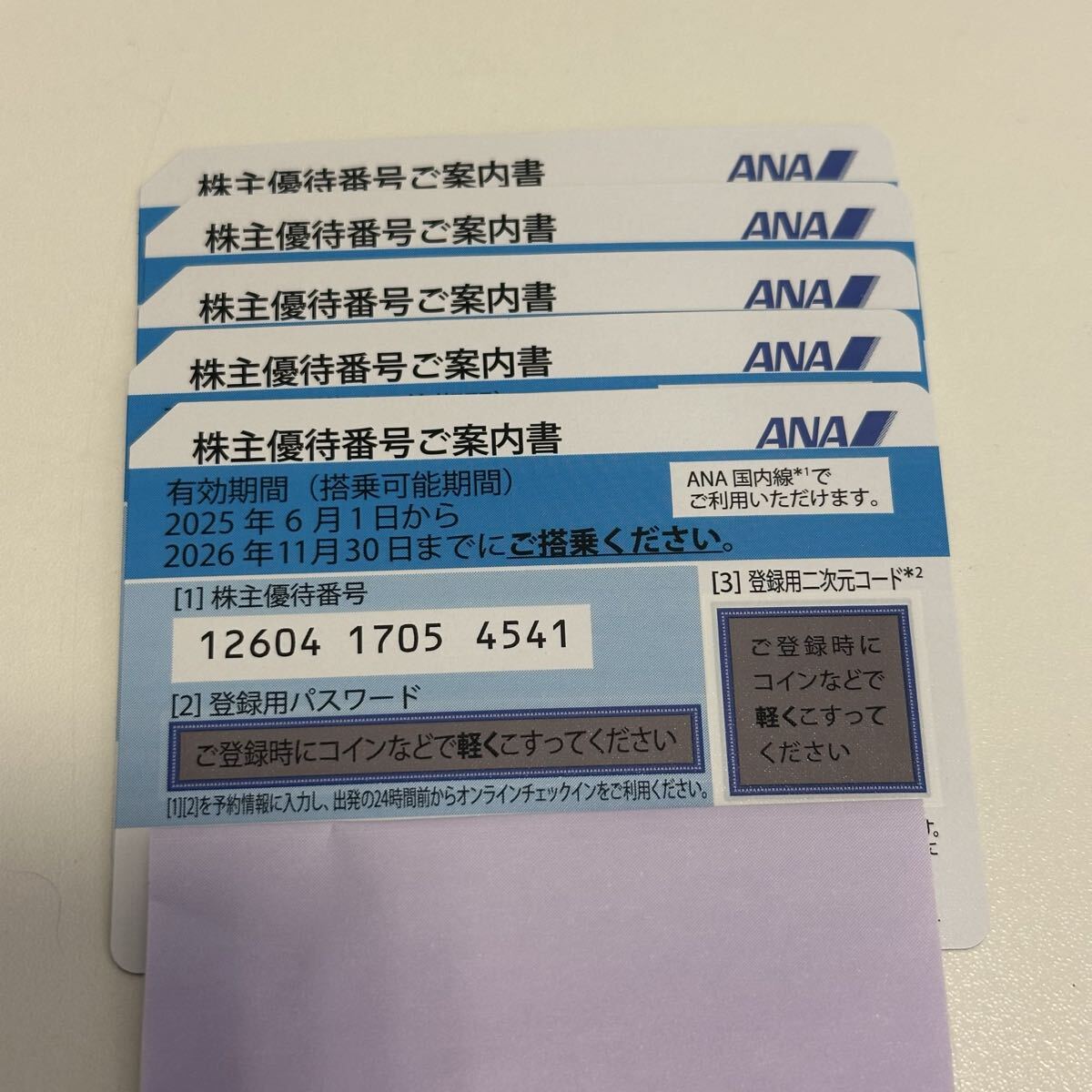 ANA 全日空 株主優待券 2026年11月30日まで ブルー 番号通知のみ 5枚