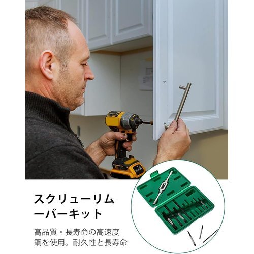 【材質】付属のドリルはHSS(高速度工具鋼)です。高速回転でご使用いただけます。粗い左ねじ高品質工具鋼鍛造、強度と耐久性高品質のドリルビット高速度鋼鍛造、各種仕様しっかりとクランプされたエキストラクター折れたネジの取り外しが容易