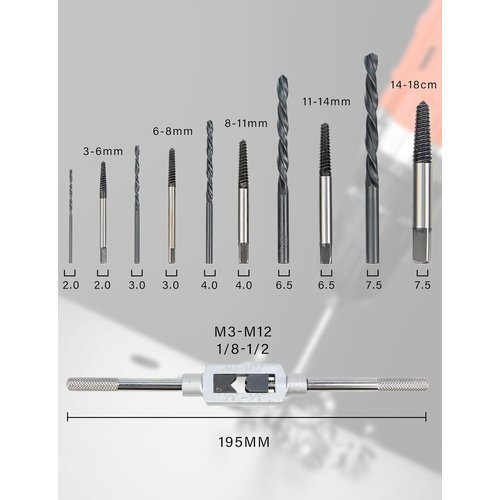 【11ピース断線エクストラクター対応サイズ】m3-m6、m6-m8、m4-m11、m11-m14、m14-m18です