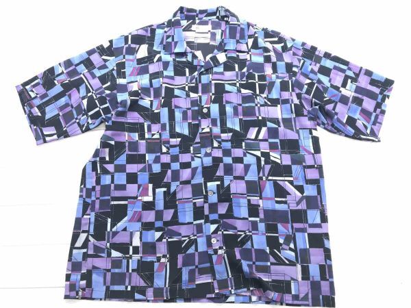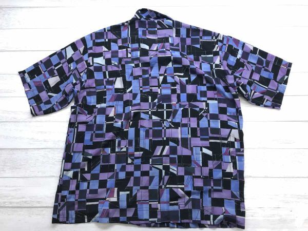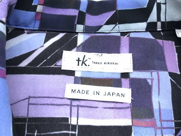 タケオキクチ TAKEO KIKUCHI レトロ モダン アート 幾何学模様 ストリート 総柄 半袖シャツ メンズ ポリエステル100% 日本製 M 紫 です。