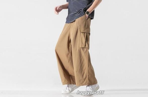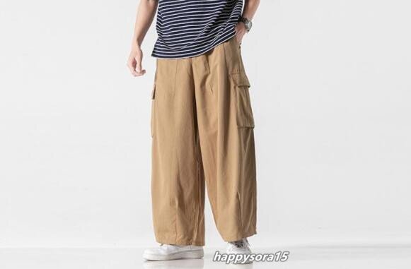 カーゴパンツ メンズ ワイドパンツ バギーパンツ サルエルパンツ 通気性 作業着 ミリタリー カジュアル アウトドア カーキ 3XL