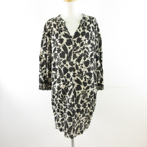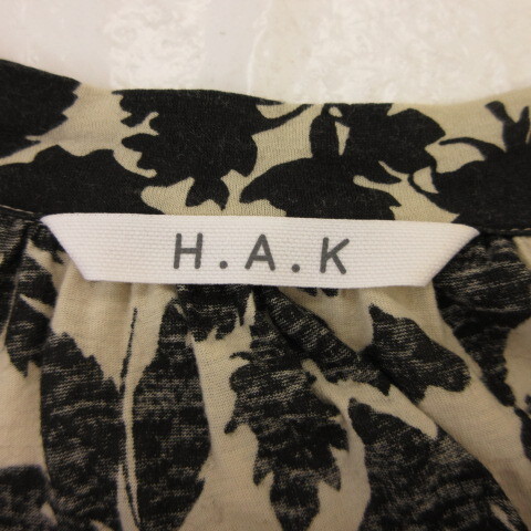 ハク スーパーハッカ H.A.K チュニック 七分袖 総柄 ベージュ 黒 *T276 レディース