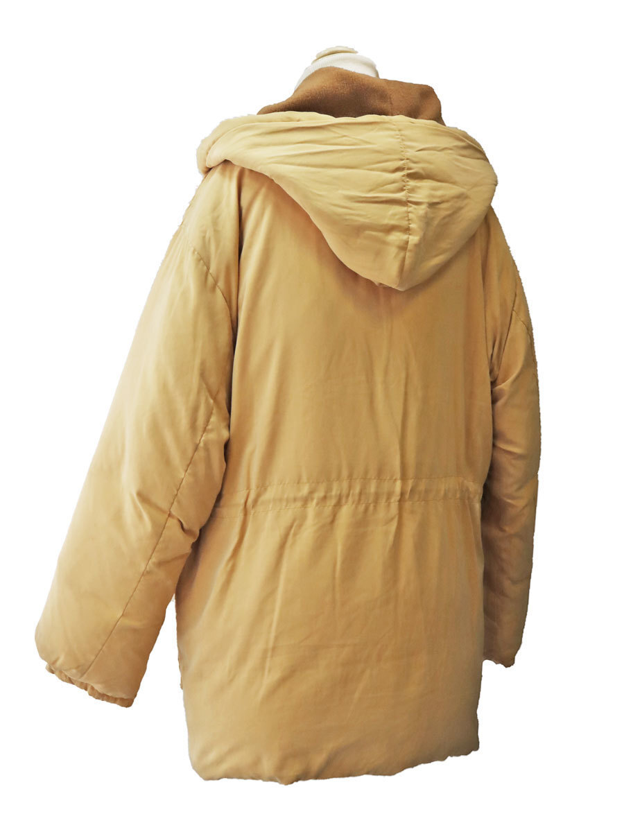 Renown シンプルライフの中綿コート。オレンジがかったベージュ。Mサイズ。ゆったり身頃で着やすいです。フードは取り外し不可。前は、ジッパー&ボタン。長期保管品ですが、ジッパーは、問題なく上がります。内側にドロステあり。ウエスト部分で絞り込み可能。筒袖。ポケットは前身頃に二つ。マチ付きがかわいいです。ボアはフードの内側のみ。たっぷりとダウン・フェザーの入ったふっくら厚みのあるコートです。暖かさは抜群だと思います。 | |||||||||||||