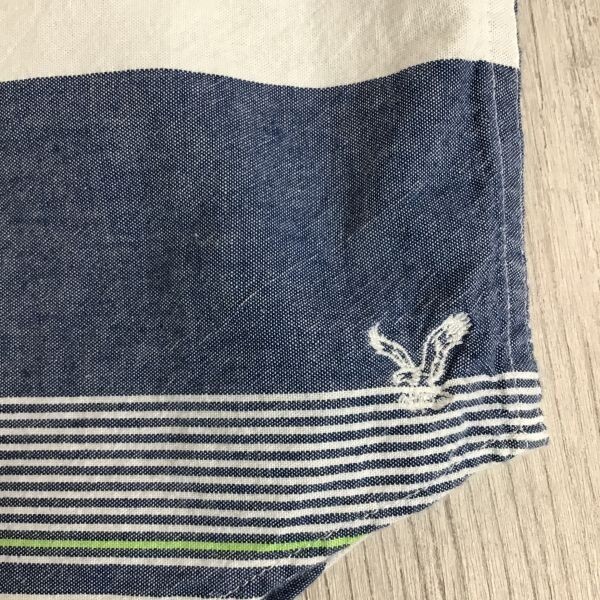 ★稀少メンズSサイズ★美品!![AMERICAN EAGLE アメリカンイーグル]マルチボーダー柄 コットン ボタンダウンシャツ ブルー 白 サーフ K-542