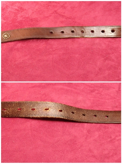 ●サイズ:表記サイズ:** 実寸サイズ116cm (バックル含むベルト全長。);ピン根元~センターホール89cm、ベルト幅:2.5cm 調整2.5cm間隔 9穴