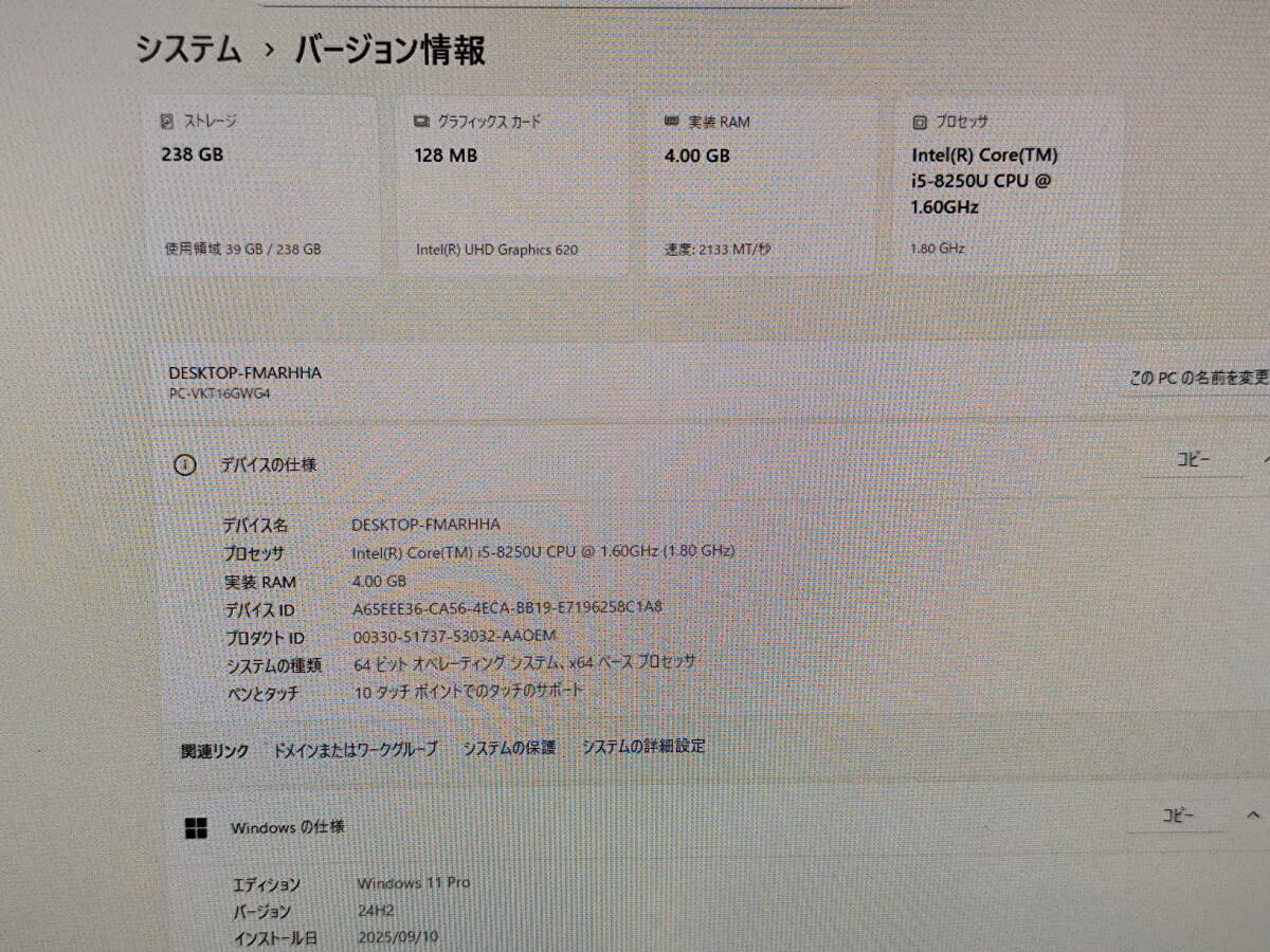 最新のPCとは言えませんが、快適な動作をしてくれます。