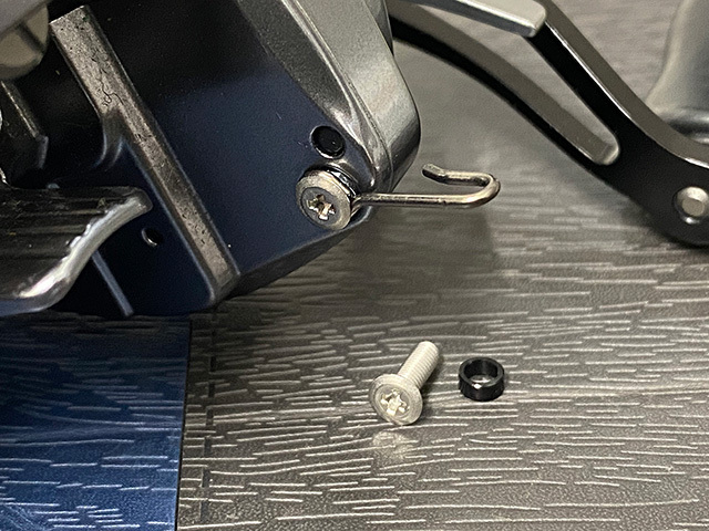 専用に削り出したスペーサーはボディより少し出ているので、フックキーパーが動いてもボディを傷付
