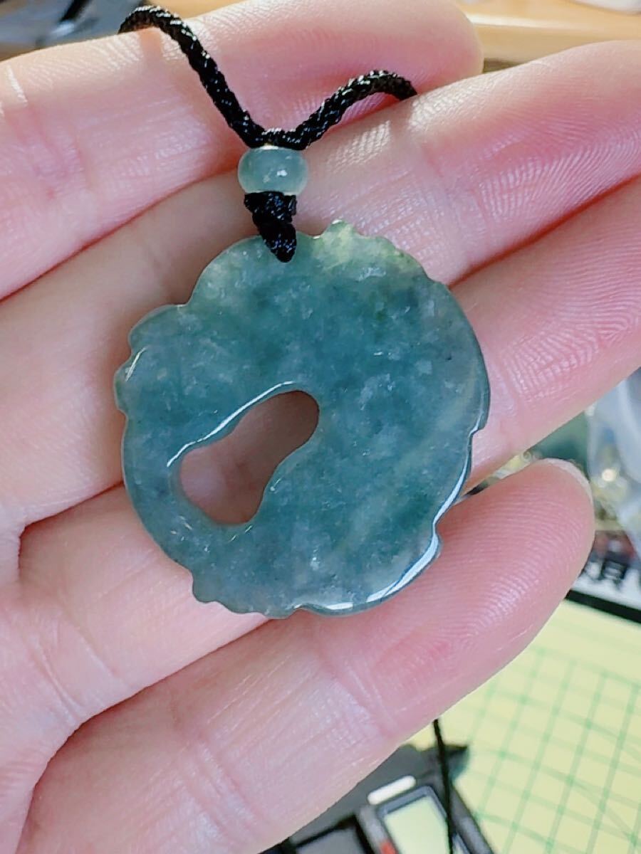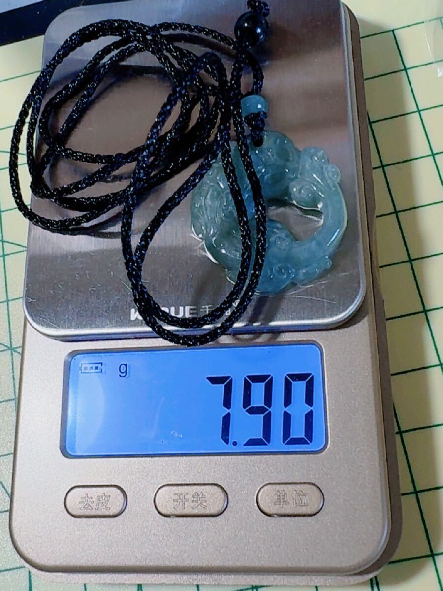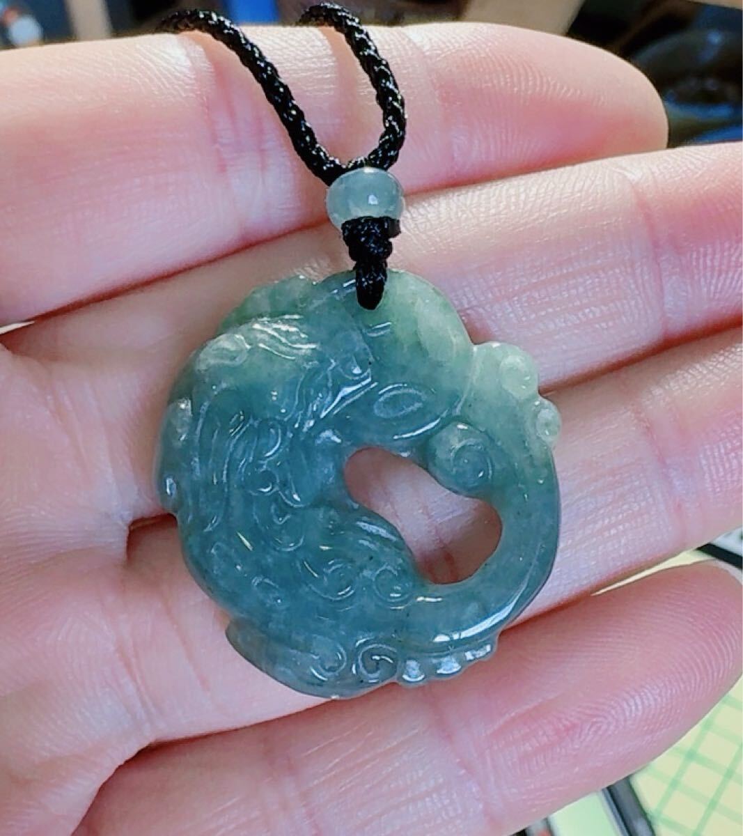R2-02046 本翡翠 《本物保証》龍牌ペンダント 藍水ヒスイ 天然石 ネックレス パワーストーン お守り Aジェダイト プレゼントにも 縁起物