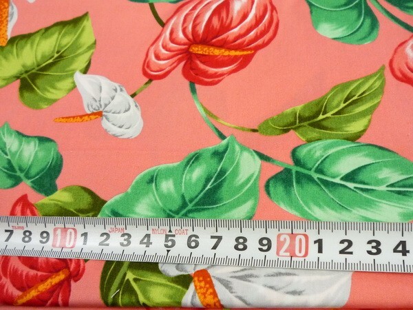 100*60★ピンク・花・南国柄の・ハギレ・生地・布★0506-63