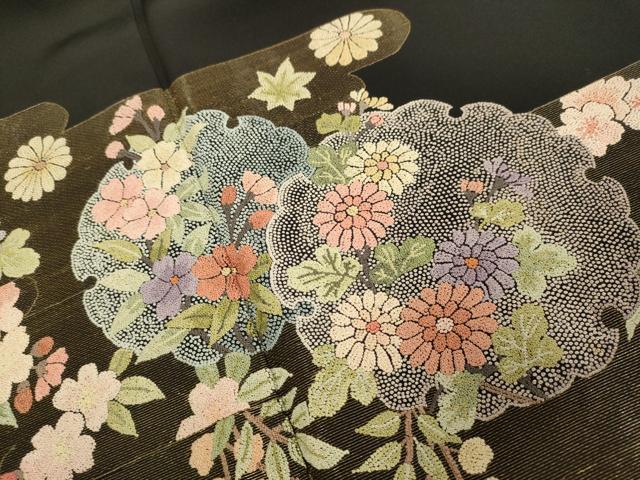 | 【正絹・五つ紋・比翼仕立て】 状態は接写画像のように衿山に薄い汚れがございますが その他特に目立ったシミ汚れなどもなく大変良い状態です。 蘇州刺繍(そしゅうししゅう)とは、 中国江蘇省の【蘇州】という街で 2500年も前から伝わっている刺繍の一種です。 使用する糸が極めて細く、刺繍面が盛り上がらないため表面が滑らかなのが特徴です。 また、両面刺繍という技法により表裏どちらから見ても糸の結び目がなく、 両側から見ても美しい仕上がりになります。 その写実的で繊細な仕上がりから絹の絵画とも称されています。 大変上質な逸品になります。 お安く出品致しますので、是非この機会にいかがでしょうか?