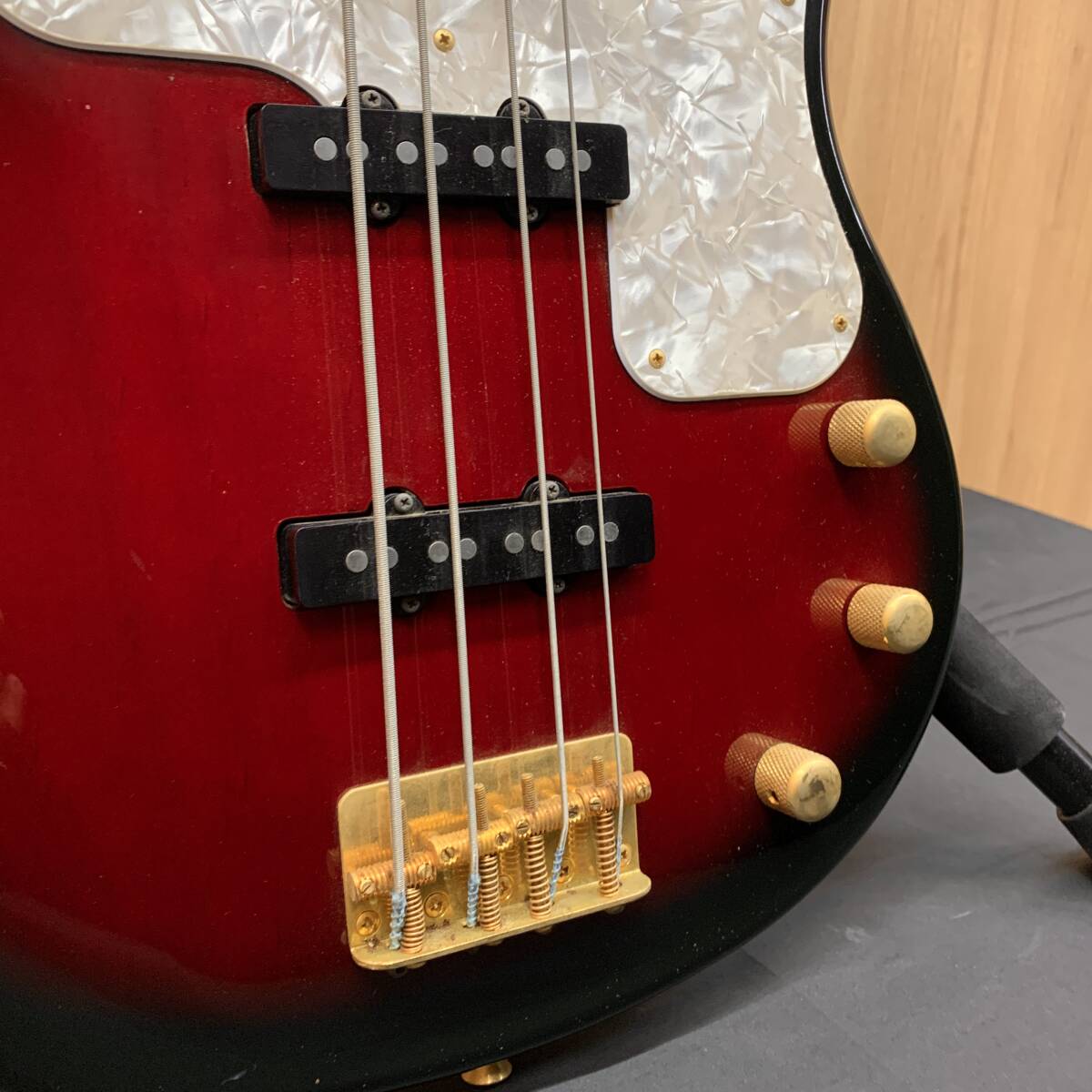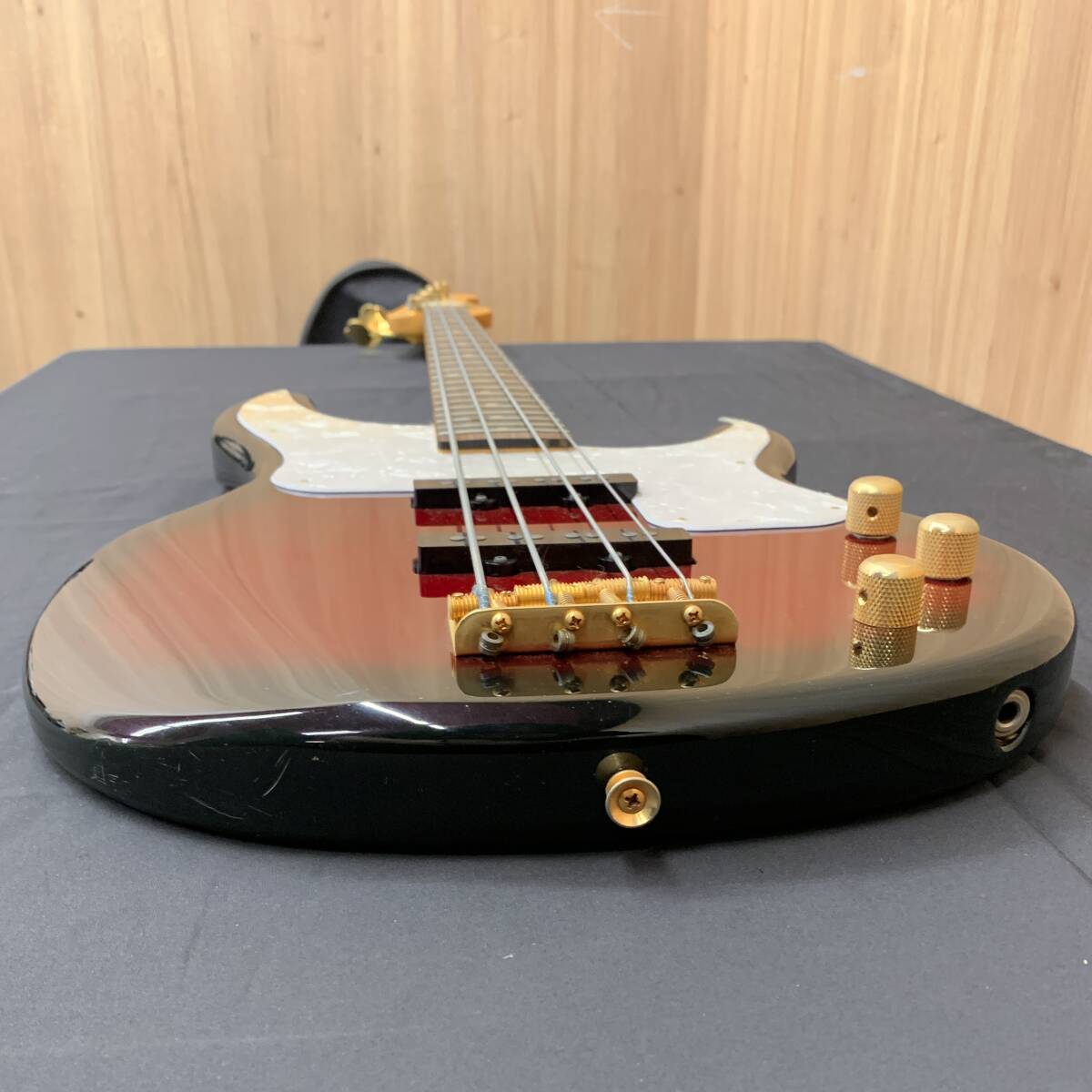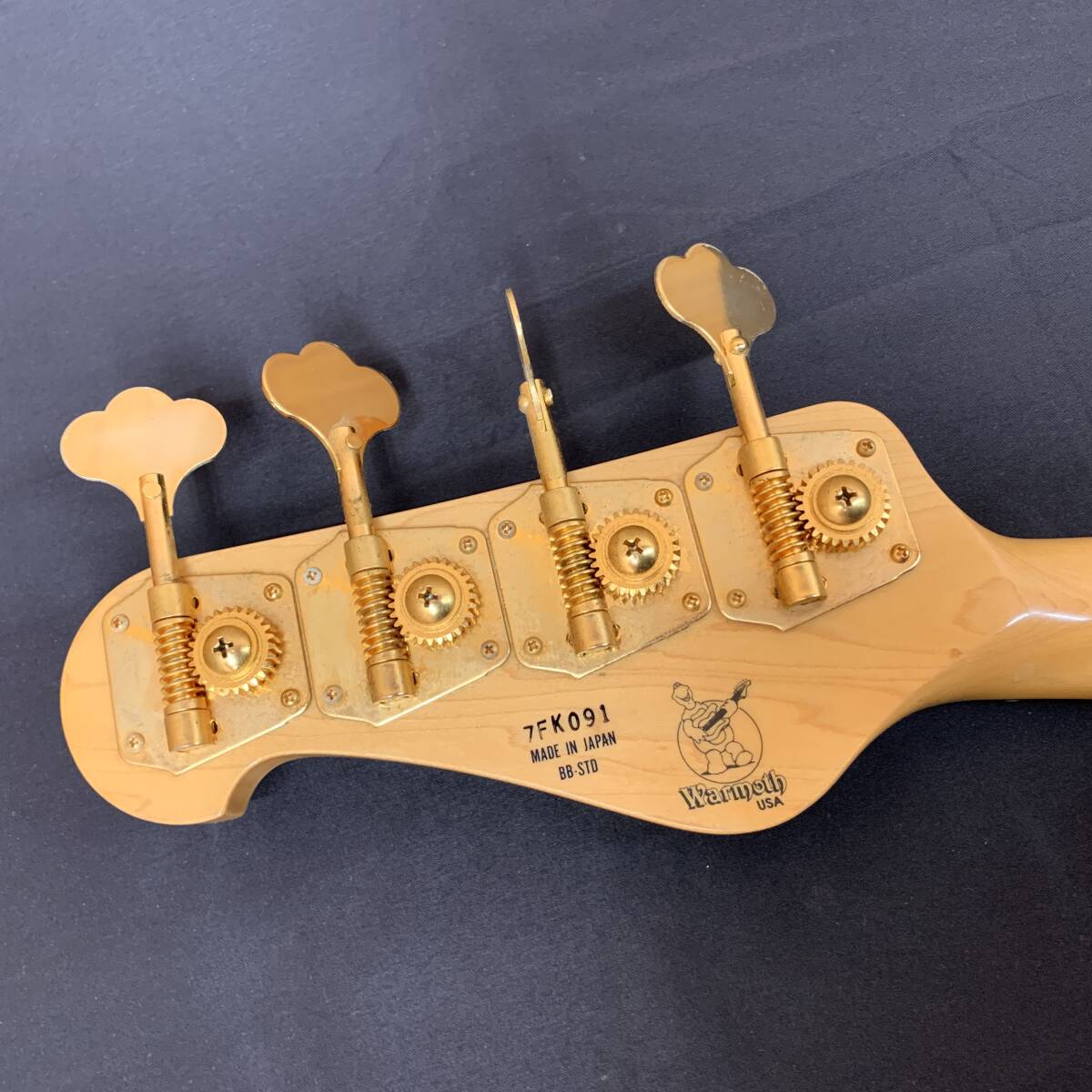 傷や錆等ダメージがあり、ネックはガムテープを巻いていたようで、塗装と融合した状態で硬化しており、ロッドが締切状態でやや捩れ、フレット浮きもあり音詰まりが発生しております。