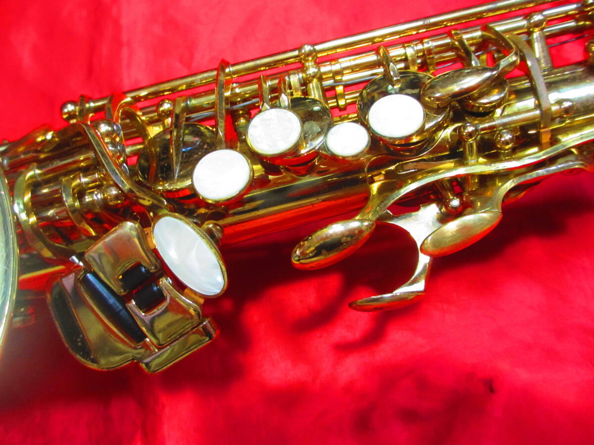 ・出品にあたり手間をかけて調整しましたので、低音から高音までよく鳴り、音程も良好です。キーポジションも左手高音部パームキーはじめセルマーに近い調整をしましたので、セルマーから持ち替えても違和感少なめで右手部もコンパクトです。