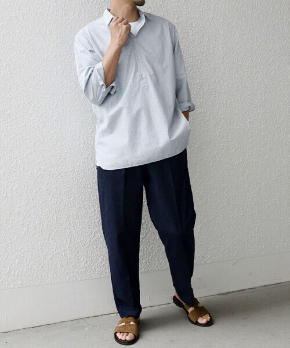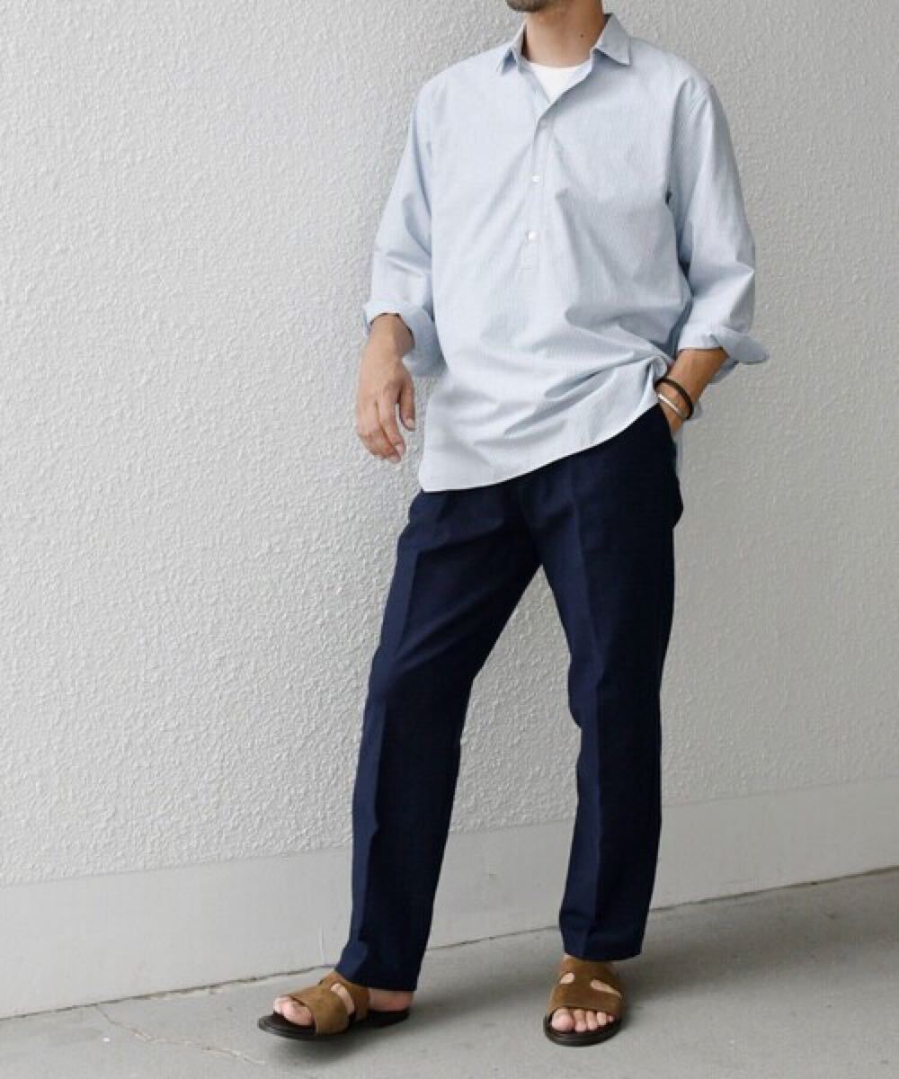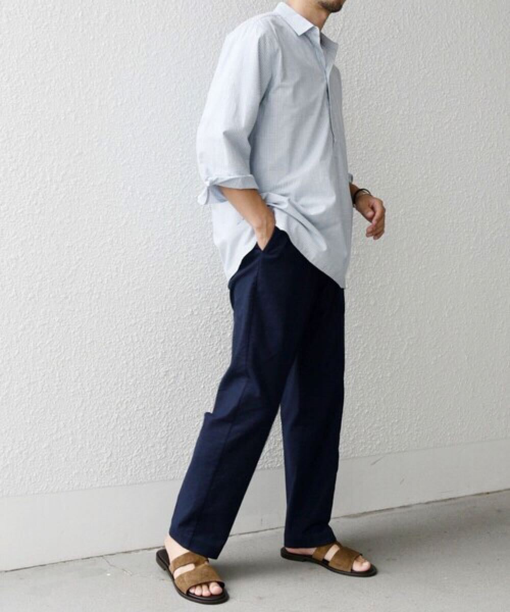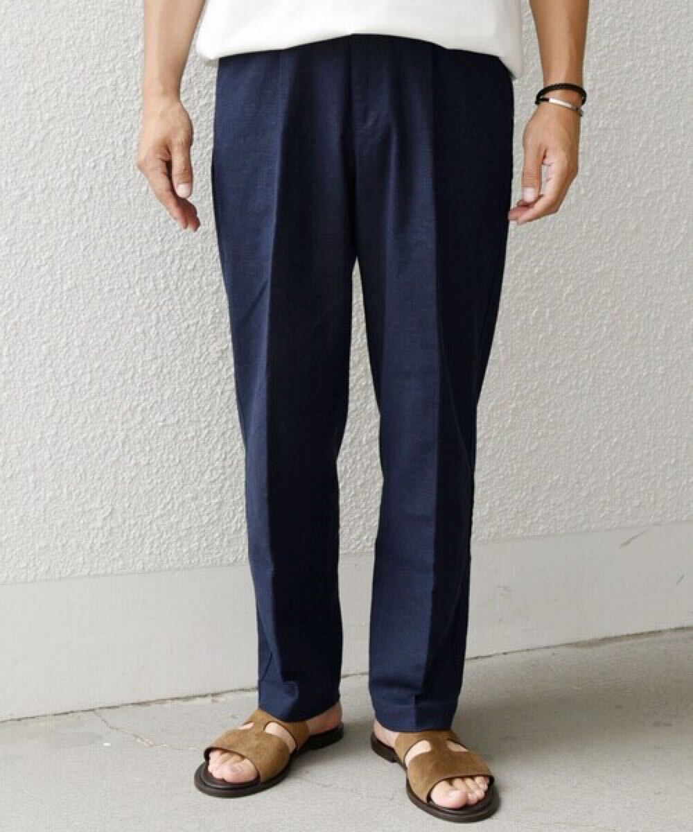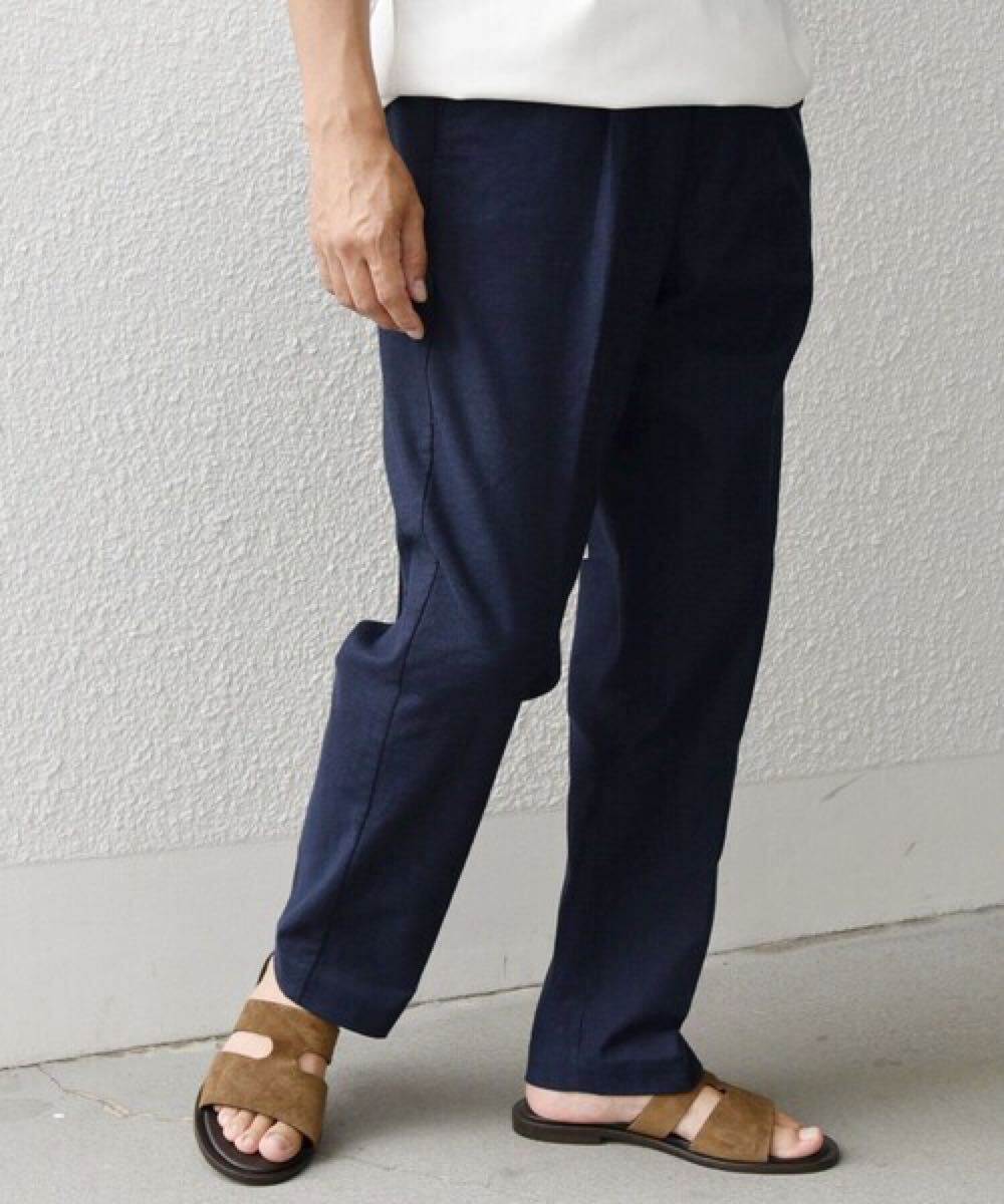 リネンをミックスする事で、所々に見られる糸ムラやシワ感がナチュラルな雰囲気を醸し出し、清涼感のある盛夏ボトムスに仕上がっています。