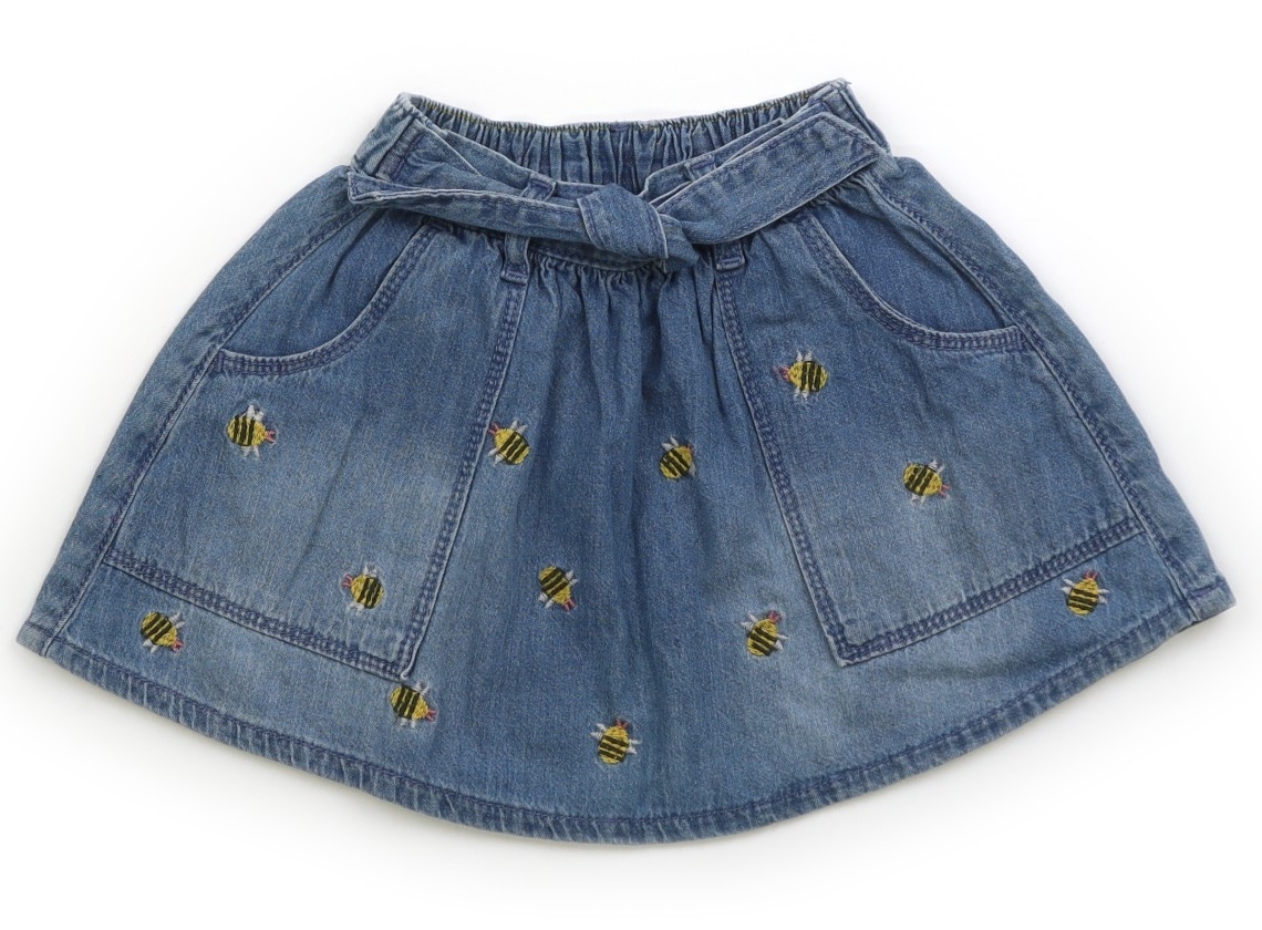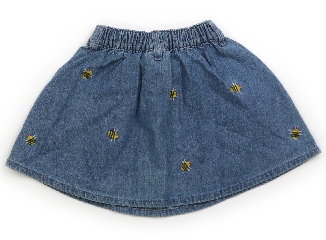 薄手のデニム地。ウエストは半分ゴムです。ミツバチの刺繍が可愛いデザイン。全体的に使用感がありますが、特に目立つ汚れはなくまだお使い頂けそうです。