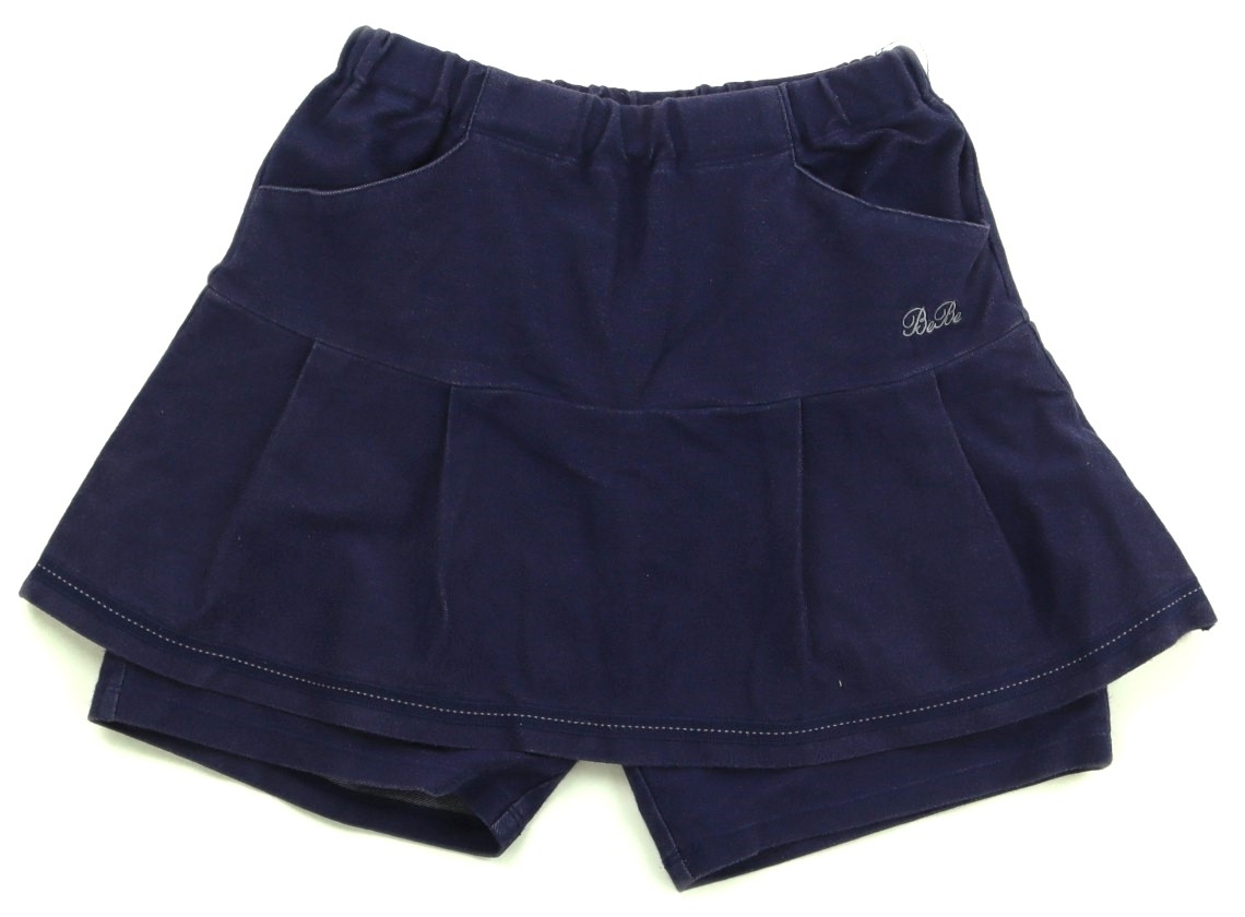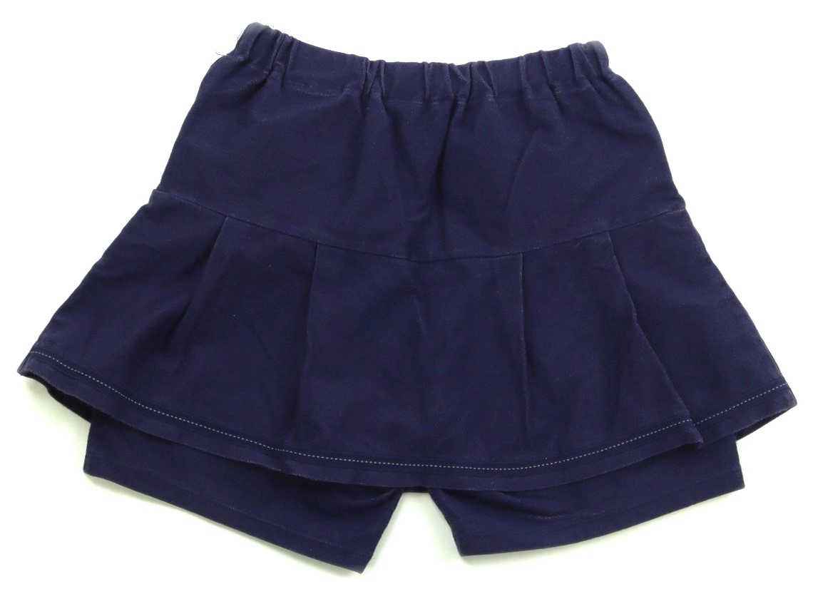 綿・ポリエステル・ポリウレタンのカットソー地で、ショート丈のレギンス一体型。ウエストは総ゴムです。色褪せ・毛羽立ちが目立ちます。