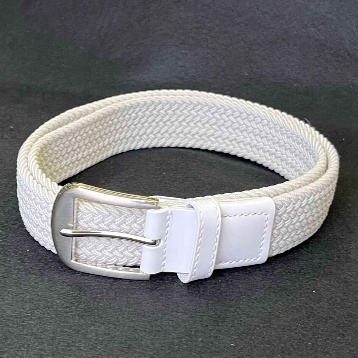 丈夫な天然ゴムを編んだ伸縮性のあるゴムメッシュベルトです。付属部分はレザーを使用してますので高級感があり丈夫です。