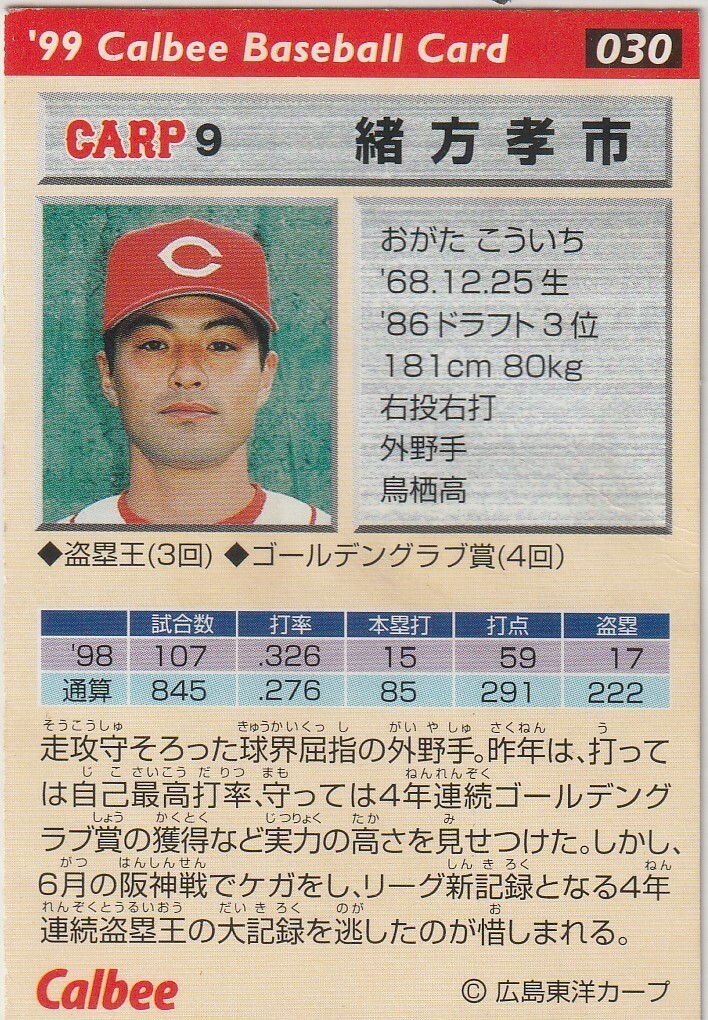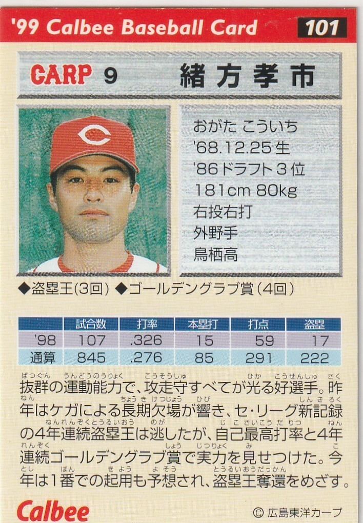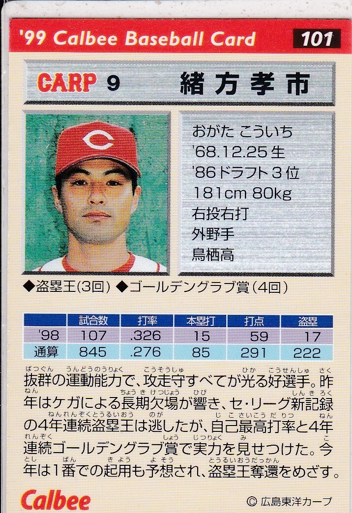 ●1999カルビー 【緒方 孝市】 BASEBALL CARD No.101:広島 130/260