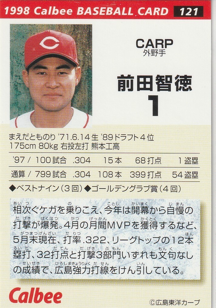 ●1998カルビー【前田 智徳】プレ版:金箔押サインパラレル No.121:広島