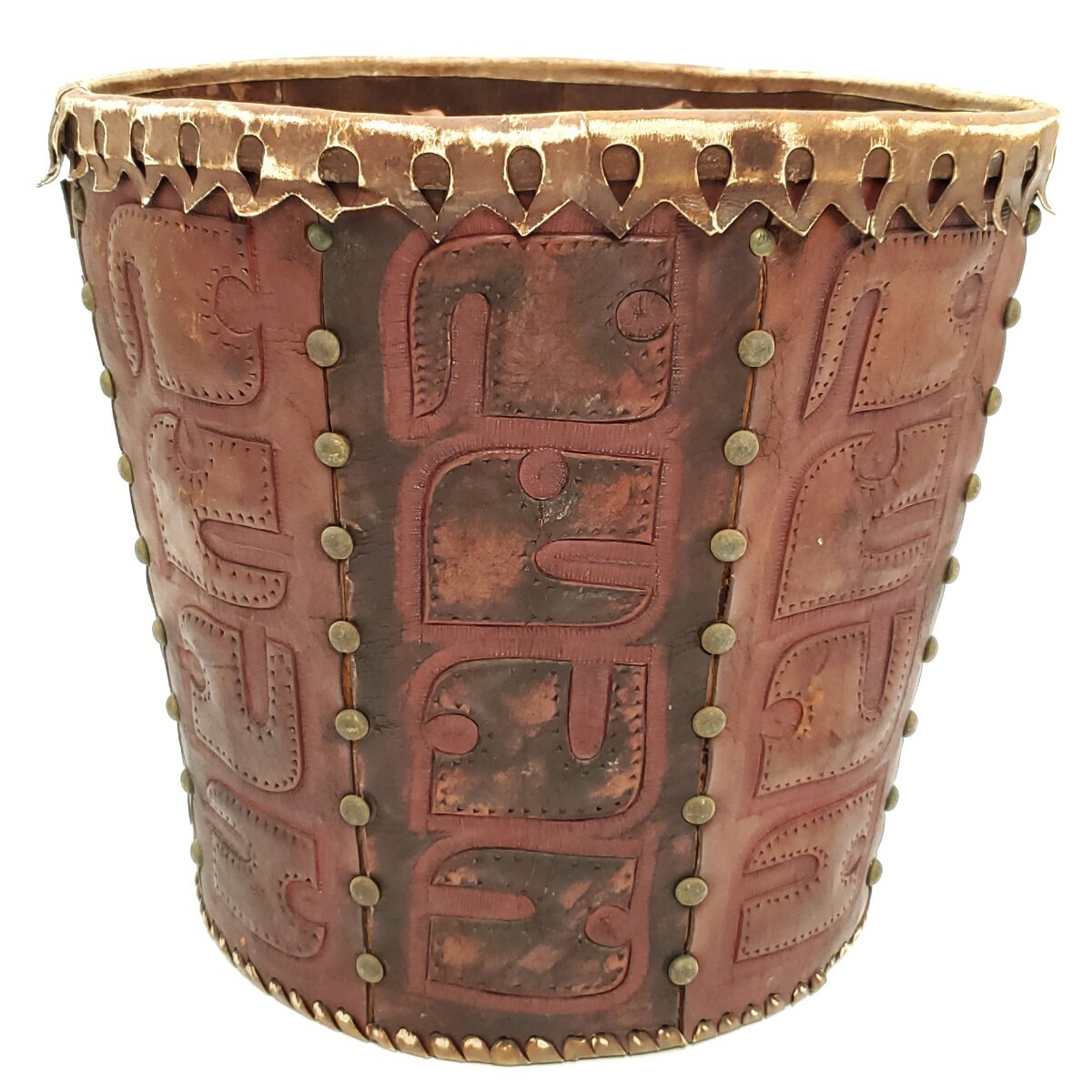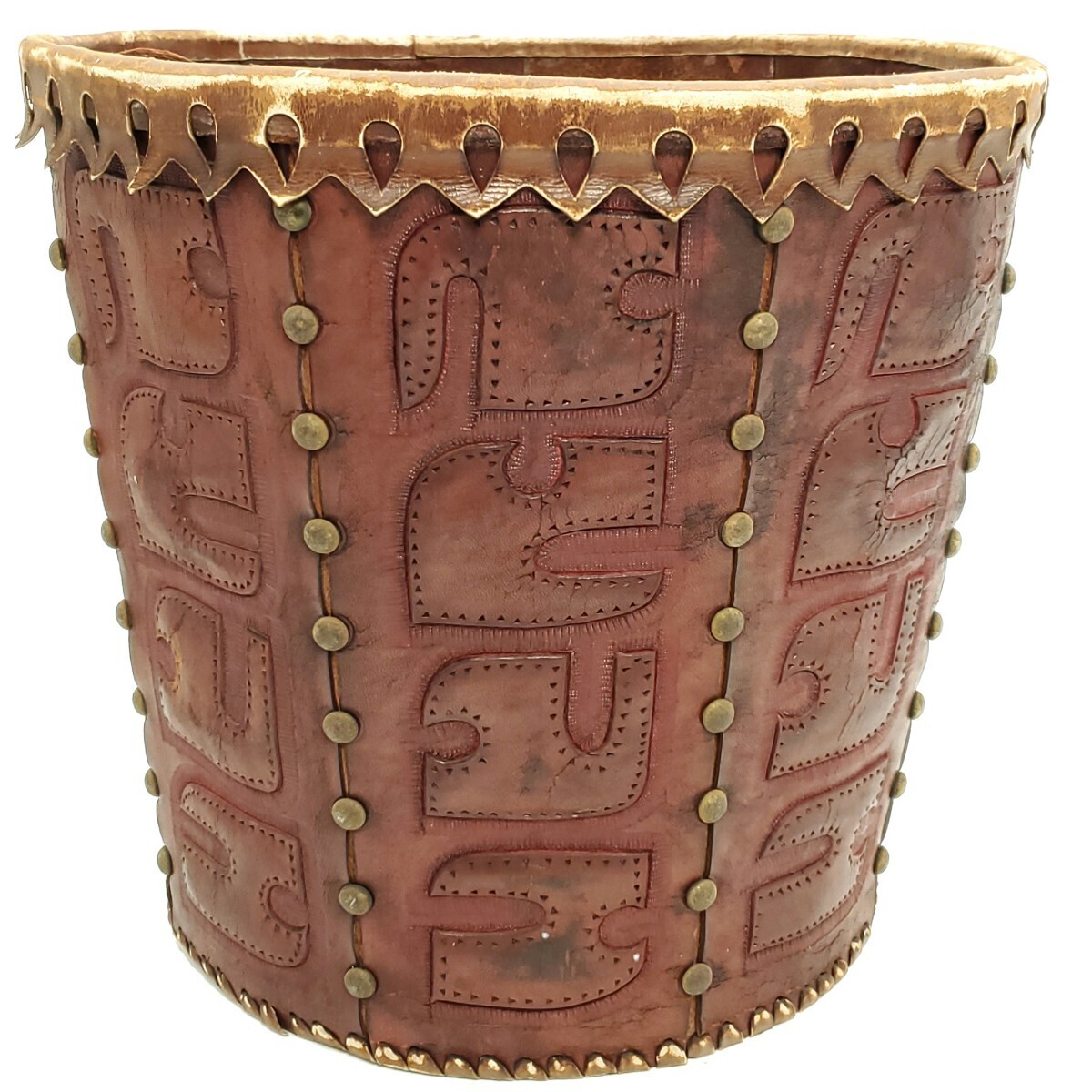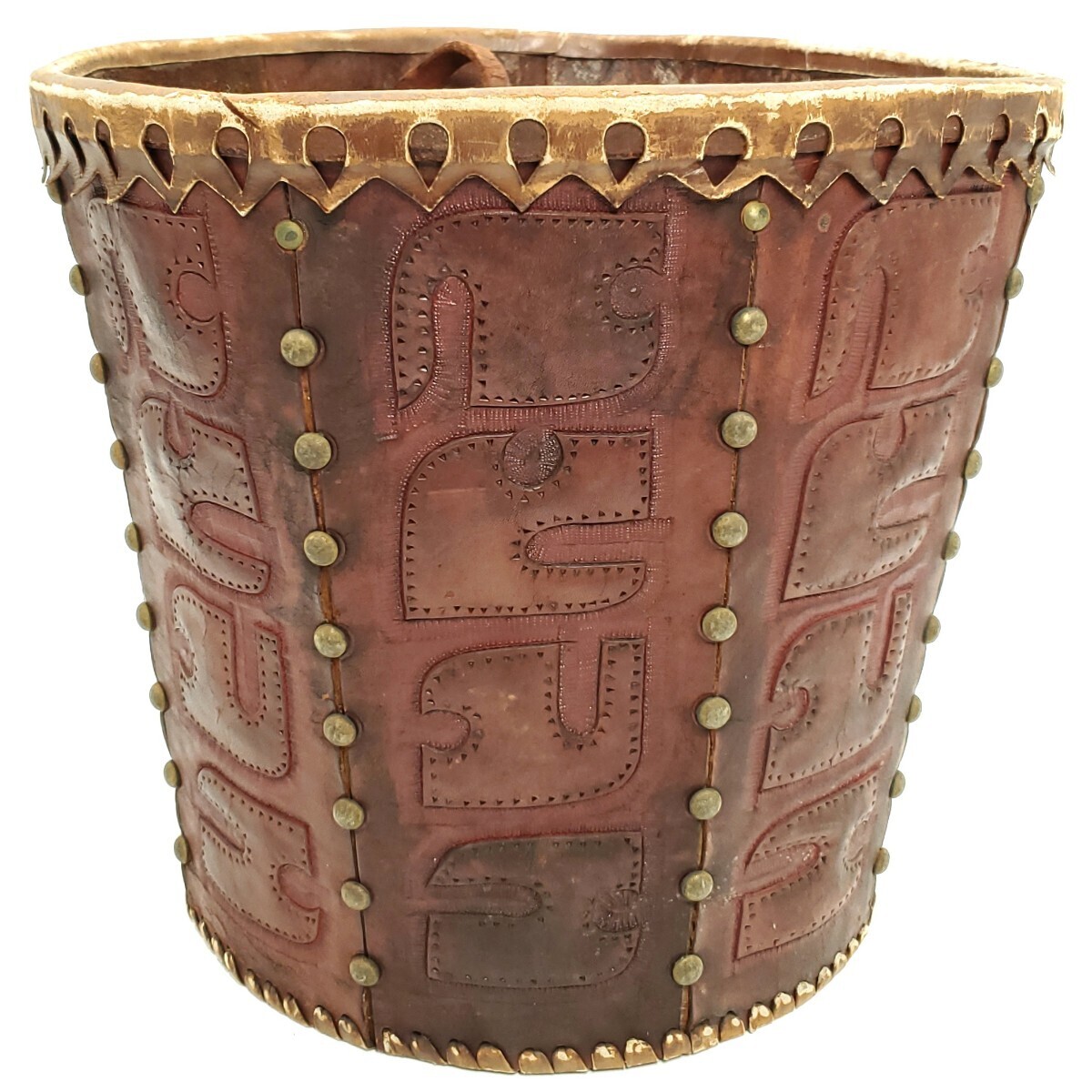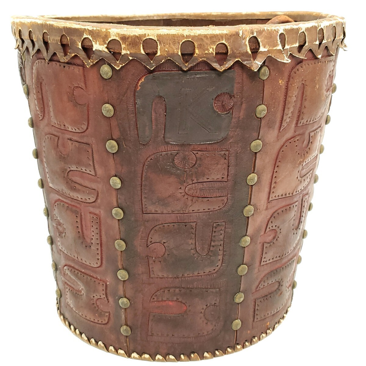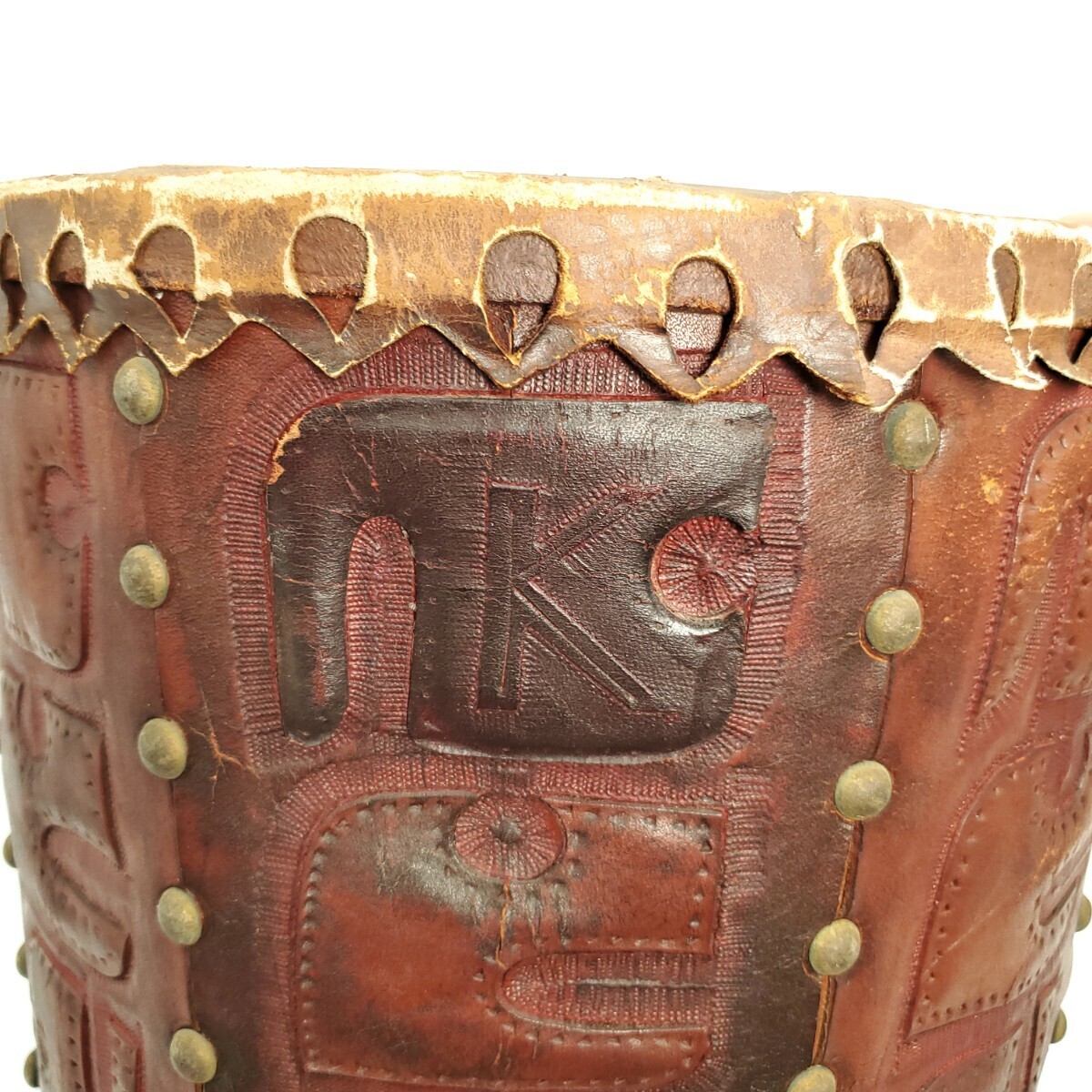 肉厚なレザーに丁寧なカービングが施され、金属の鋲がアクセントになっています。