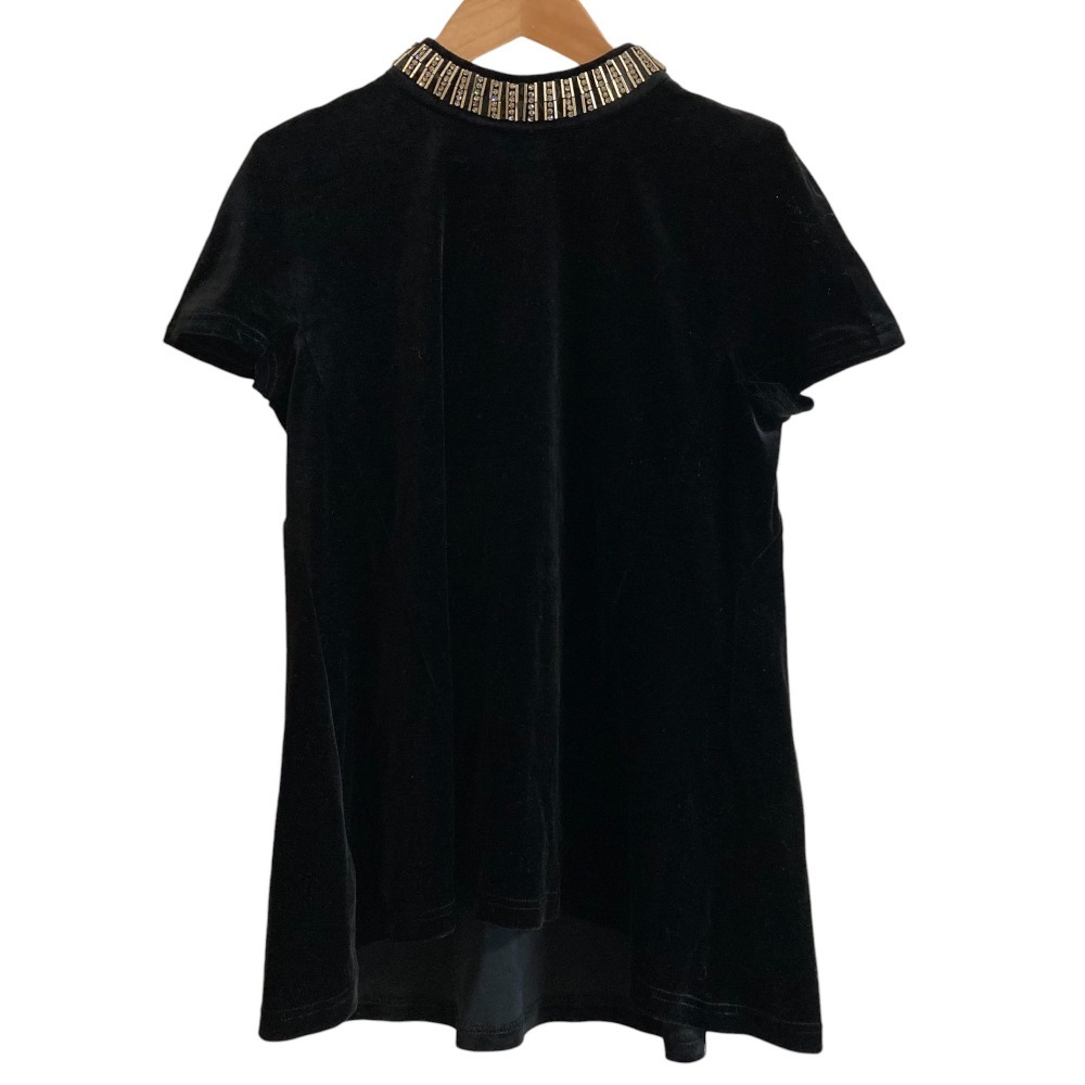 美品 VELOUR NOIR by FOXEY NEW YORK ベロアノワール フォクシーニューヨーク ビジューネック 半袖 カットソー サイズ40 ブラック