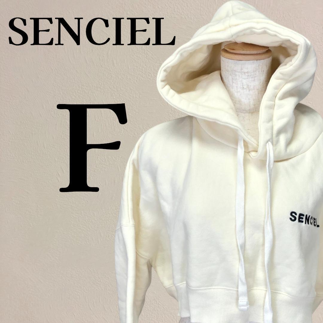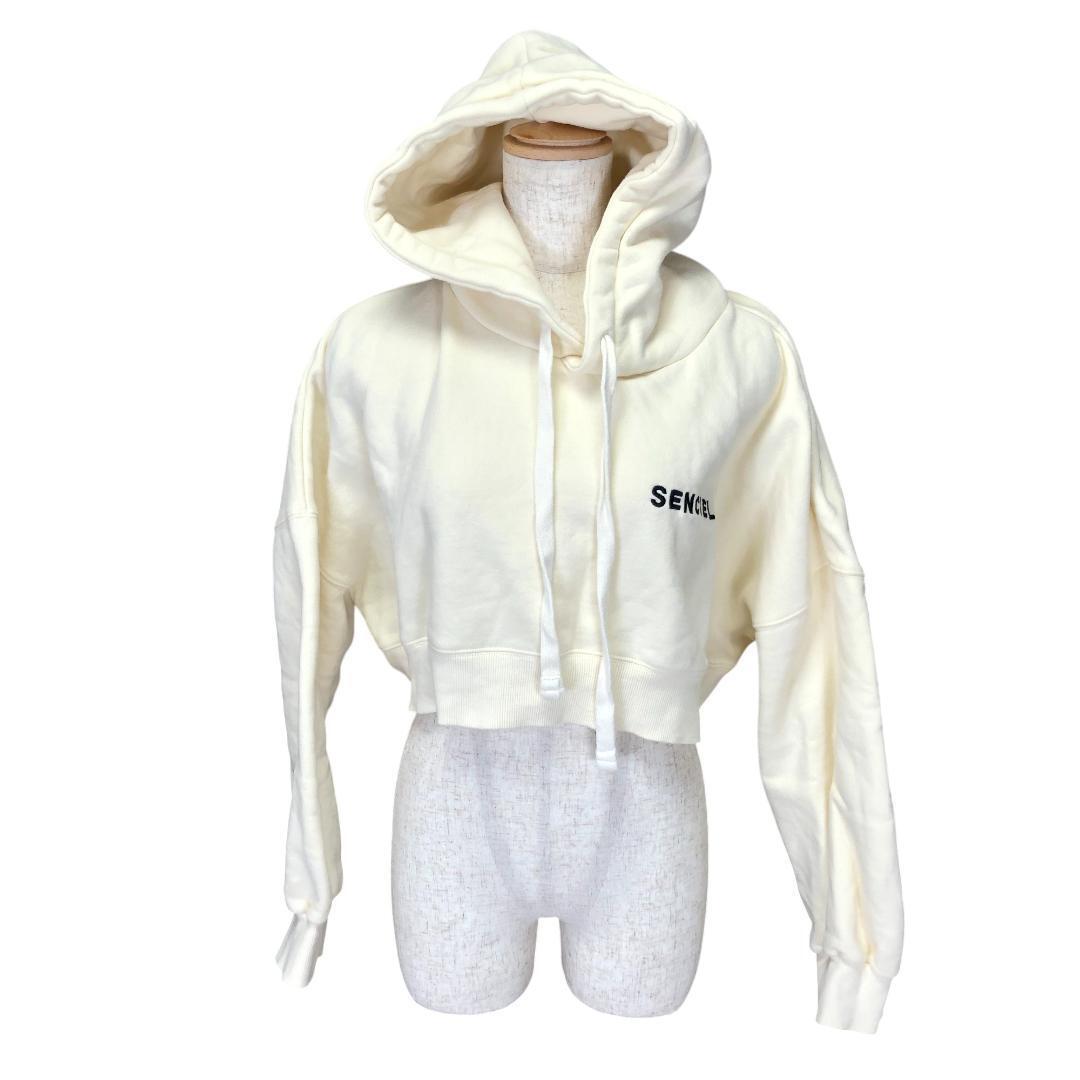 【美品】SENCIEL 裏起毛 クロップド丈パーカー F オフホワイト