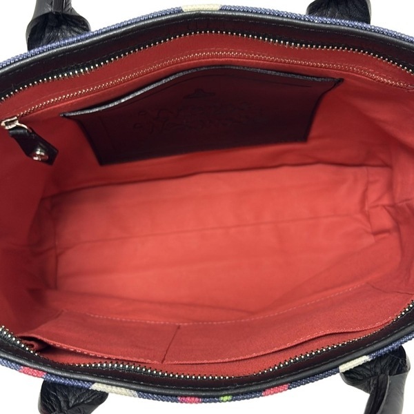 ヴィヴィアンウエストウッド VivienneWestwood ハンドバッグ レザー ネイビー×黒×マルチ 美品 バッグ