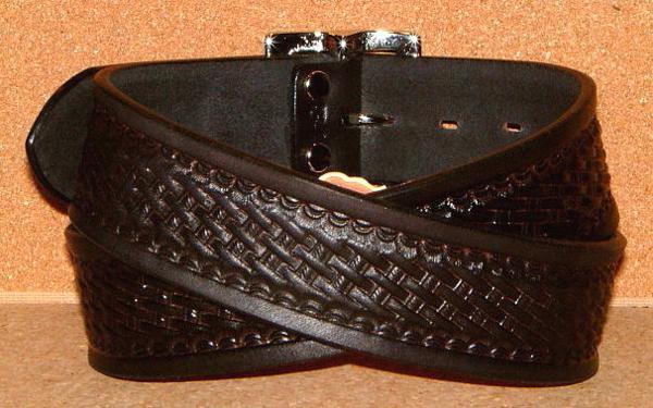 モデルは≪サドルレザー製 バスケットクラフト ギャリソンベルト≫、