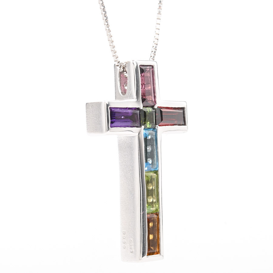 ダイヤ ネックレス ダイヤ0.6ct トパーズ ガーネット 9.5g レディース 中古A品
