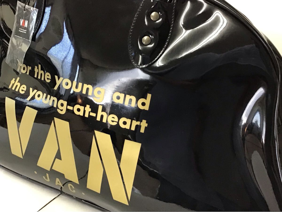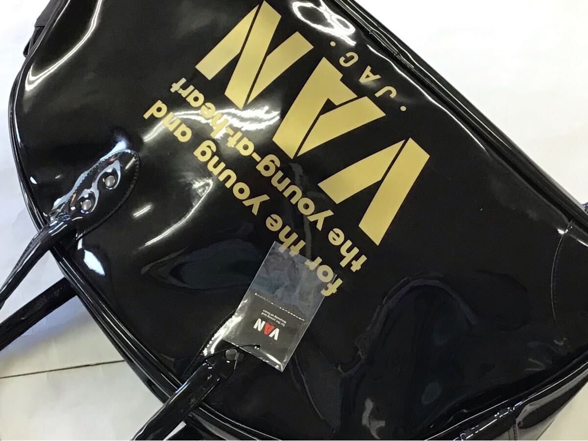 送料無料!VAN JACKET INC. ヴァンヂャケット マジソンタイプのエナメルボストンバッグの出品です。素材は画像にてご確認ください。サイズは縦が最大約30cm 横が最大約50cm マチが最大約15cmです。未使用新品タグ付きのデッドストックアイテムです。保管上の細かいキズはあると思います。画像にてご確認いただきNC NRでお願いいたします。ブラックカラーにゴールドの定番ロゴが映えます。希少なショップ限定カラーです。ハンドルのところを少し曲げて送料無料で発送いたします。スポーツジムや小旅行などに重宝すると思います。