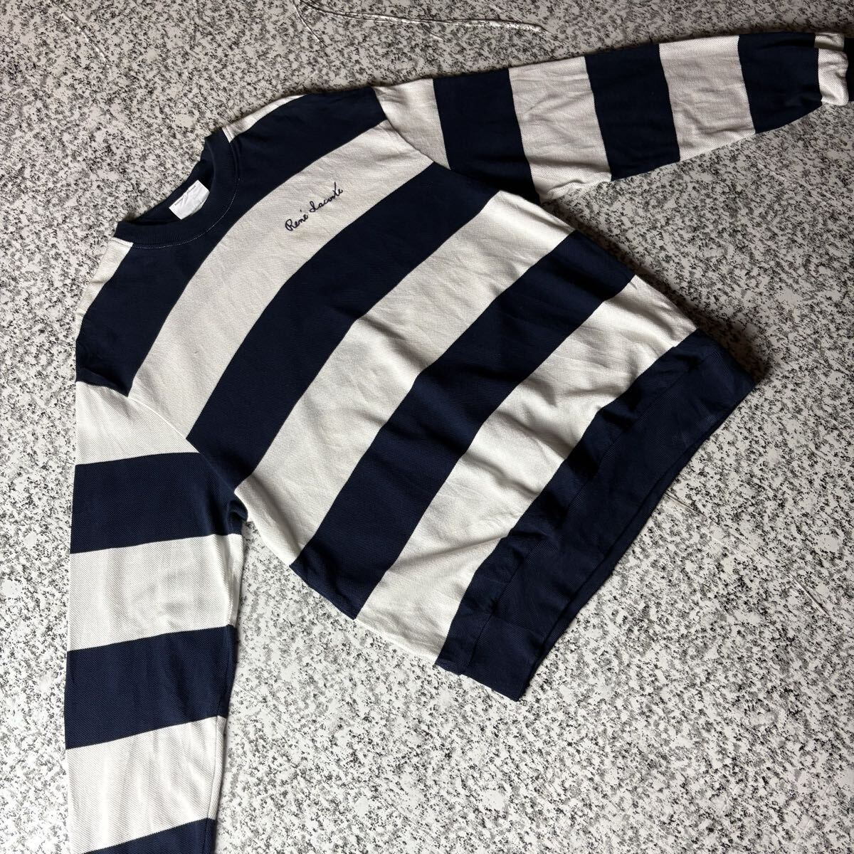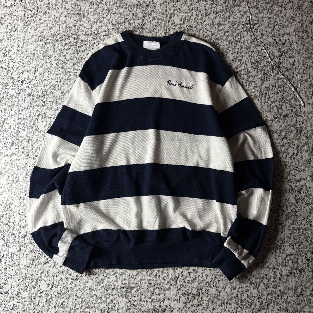 【グッドレギュラー】フレンチラコステ 白ワニ ボーダー 鹿の子 L/S Tシャツ ネイビー ホワイト 40サイズ