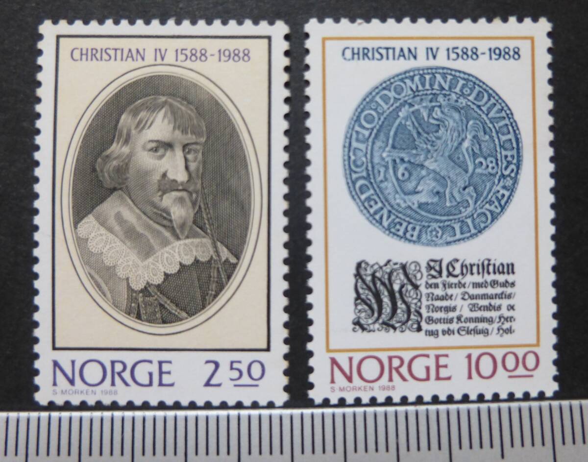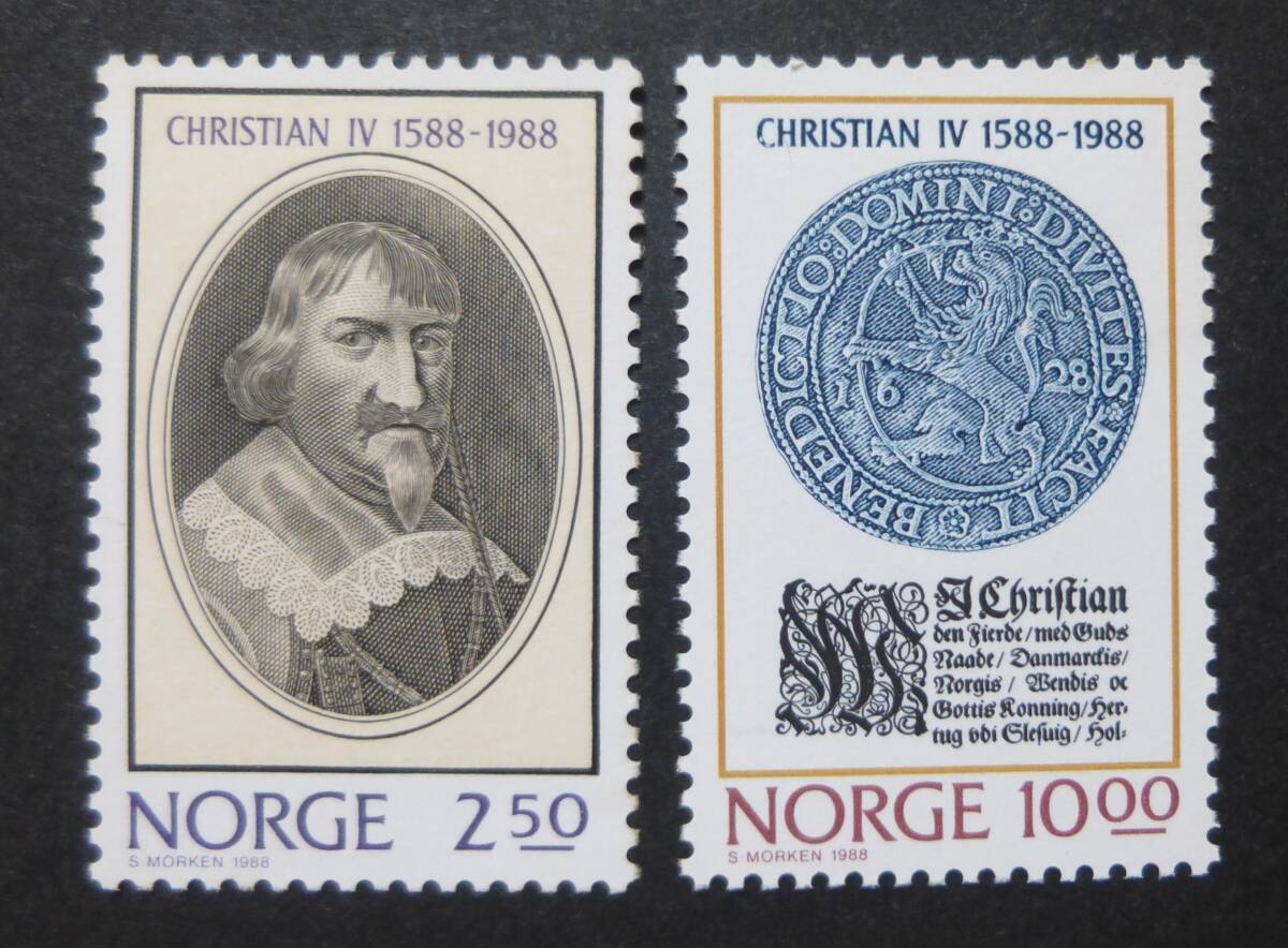 ノルウエーで、 1988年に発行された、 クリスチャン 4世王の 在位から400年記念 切手です。