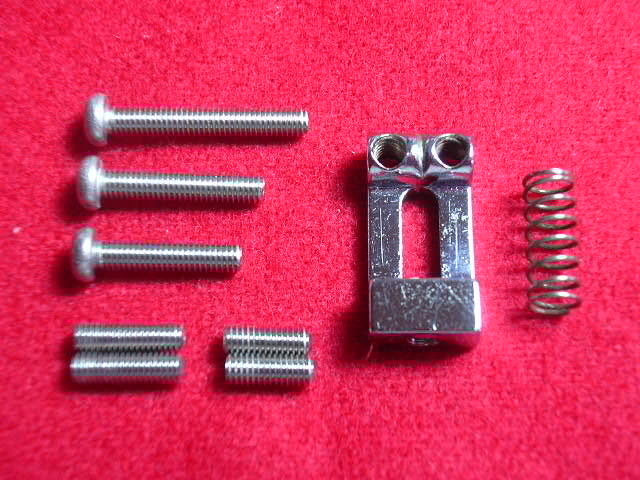 //////////////////////////////////////////////////////////// ■■■ギタリストの定番雑誌「ヤング・ギター」■■■ 超大量、250冊以上を出品中! ★読みたかった1冊、好きなギタリスト特集の1冊、 興味ある記事の1冊が見つかるかも。 こちらからチェック!→ ヤングギター出品中 ★出た検索窓に『ヤング・ギター イングヴェイ』のように スペース+人名などを付けると、記事が掲載された号を 拾い出して一覧で見ることができます。 ■■■エレキギター・ベース用メンテナンスネジ■■■ サドル用イモネジ ピックガード用ネジ ピックアップ用ネジなど出品中! ★愛器のメンテナンスに必要なネジが見つかるかも。 こちらからチェック!→ ネジ出品中 //////////////////////////////////////////////////////////// 出品数は1個。 写真は落札後に届く品とサビ・キズ・クモリがほぼ同等品、参考写真です。 届く現物と比べ外観、状態の良し悪し、スプリングの形状が多少違うことも。 サドル幅は10.5ミリ。以下の新品ネジが付属しています。 ・イモネジ 長さ8ミリと10ミリのステンレス製新品各2本(色目はクローム) ・オクターブネジ 14ミリと16ミリと20ミリのステンレス製新品各1本(色目はクローム) 余ったネジは他のサドルへの転用や予備にご活用ください。 ■落札/購入をお考えの方へ ※複数落札/複数購入の場合「個別取引」「まとめて取引」等に関わらず当方判断で梱包数を最低限にすることがあります。 ※荷物へのオークションID・出品者IDの記入はお断りします。特に代理落札業者の方は十分ご留意ください。