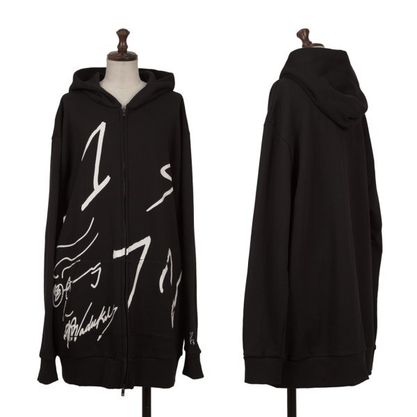 ワイズY's WITH MAX VADUKUL 1972 フロント顔料プリントオーバーサイズダブルジップパーカー 黒4 |