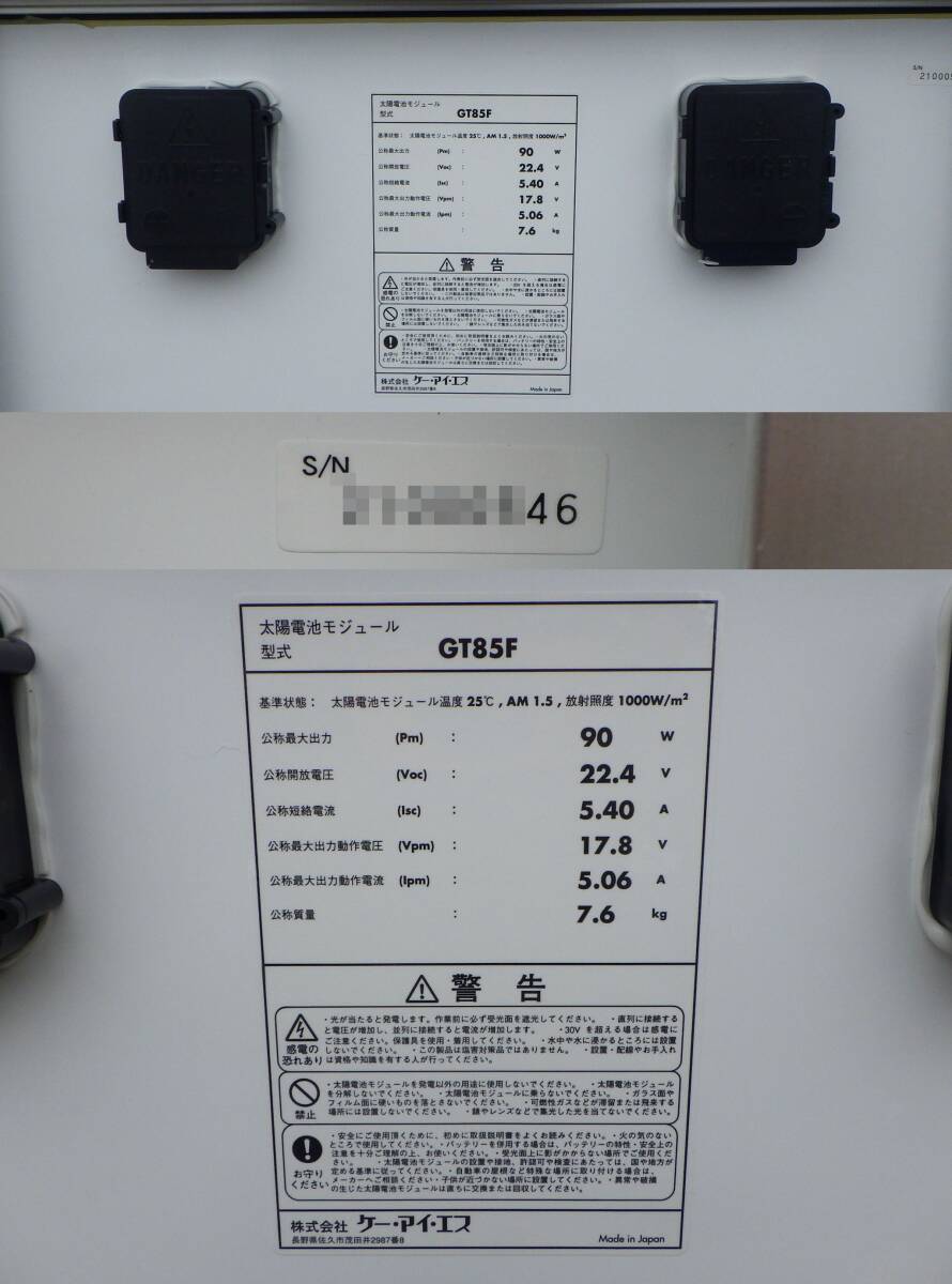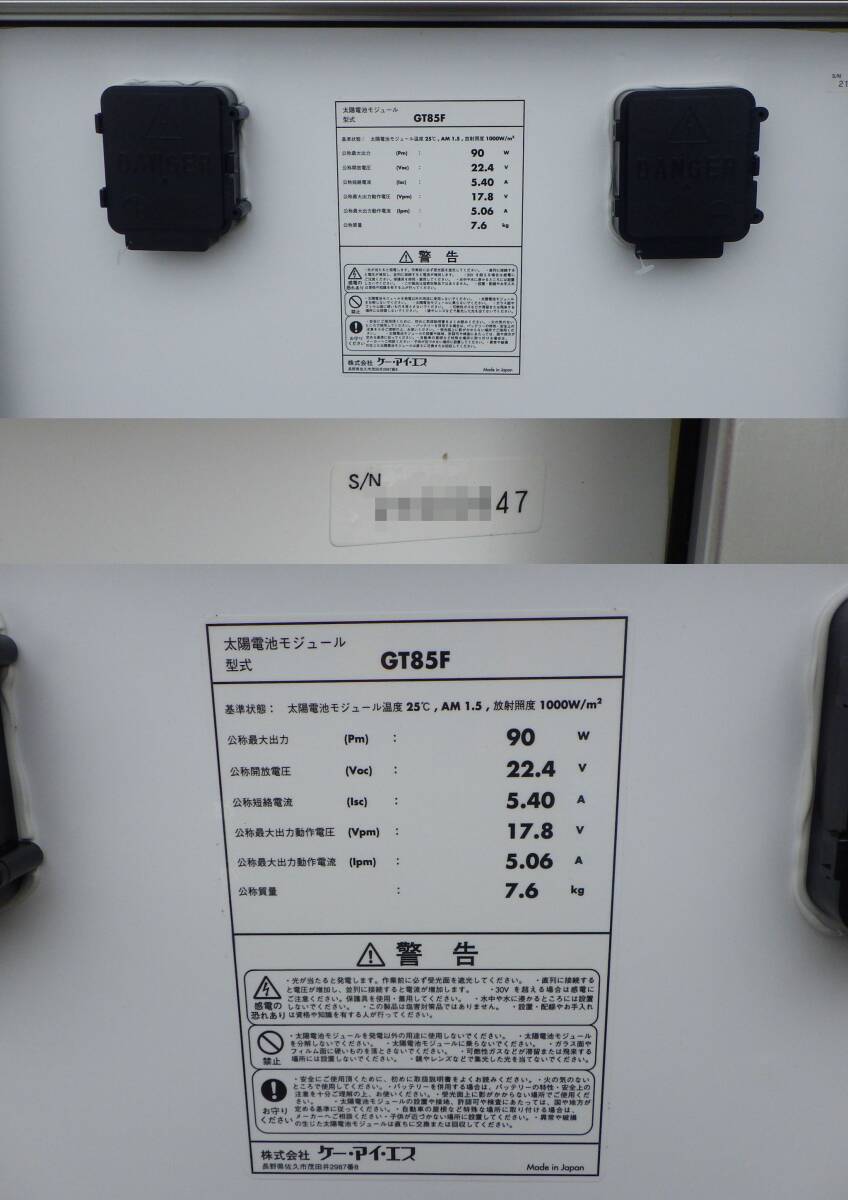 李2706 未使用 保管品 KIS ソーラーパネル 90W 17.8V GT85F 2枚 まとめ セット 太陽光 単結晶 太陽電池 モジュール