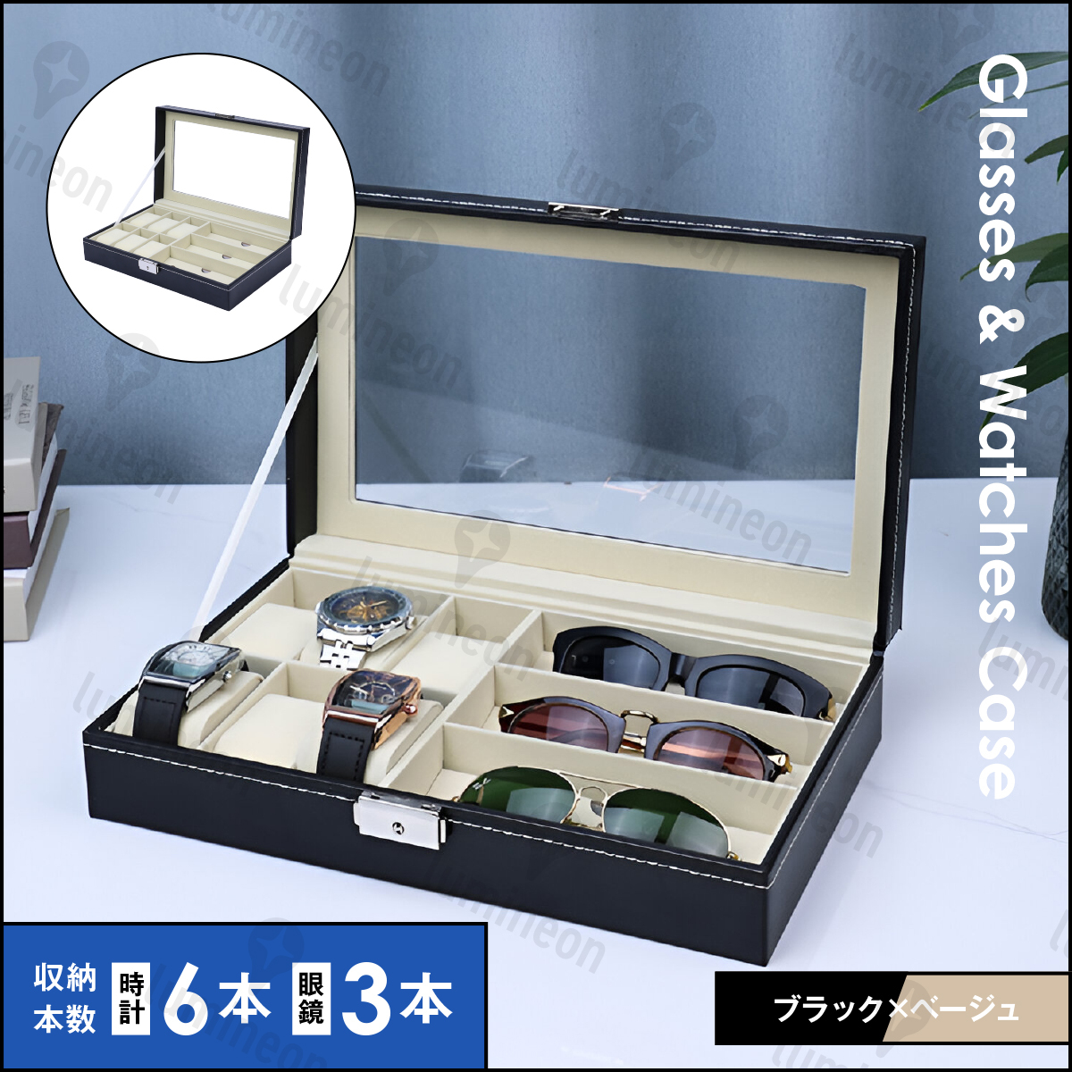 ■腕時計6本、眼鏡・サングラスが3本収納可能です。