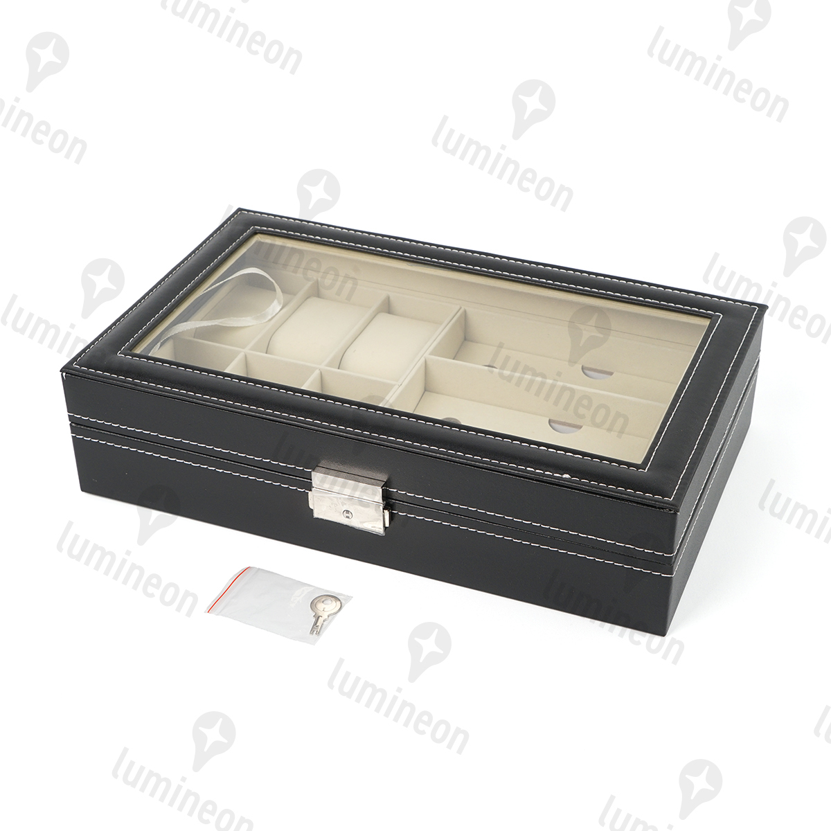 ■高級感あるレザー調デザインの時計・メガネケースです。