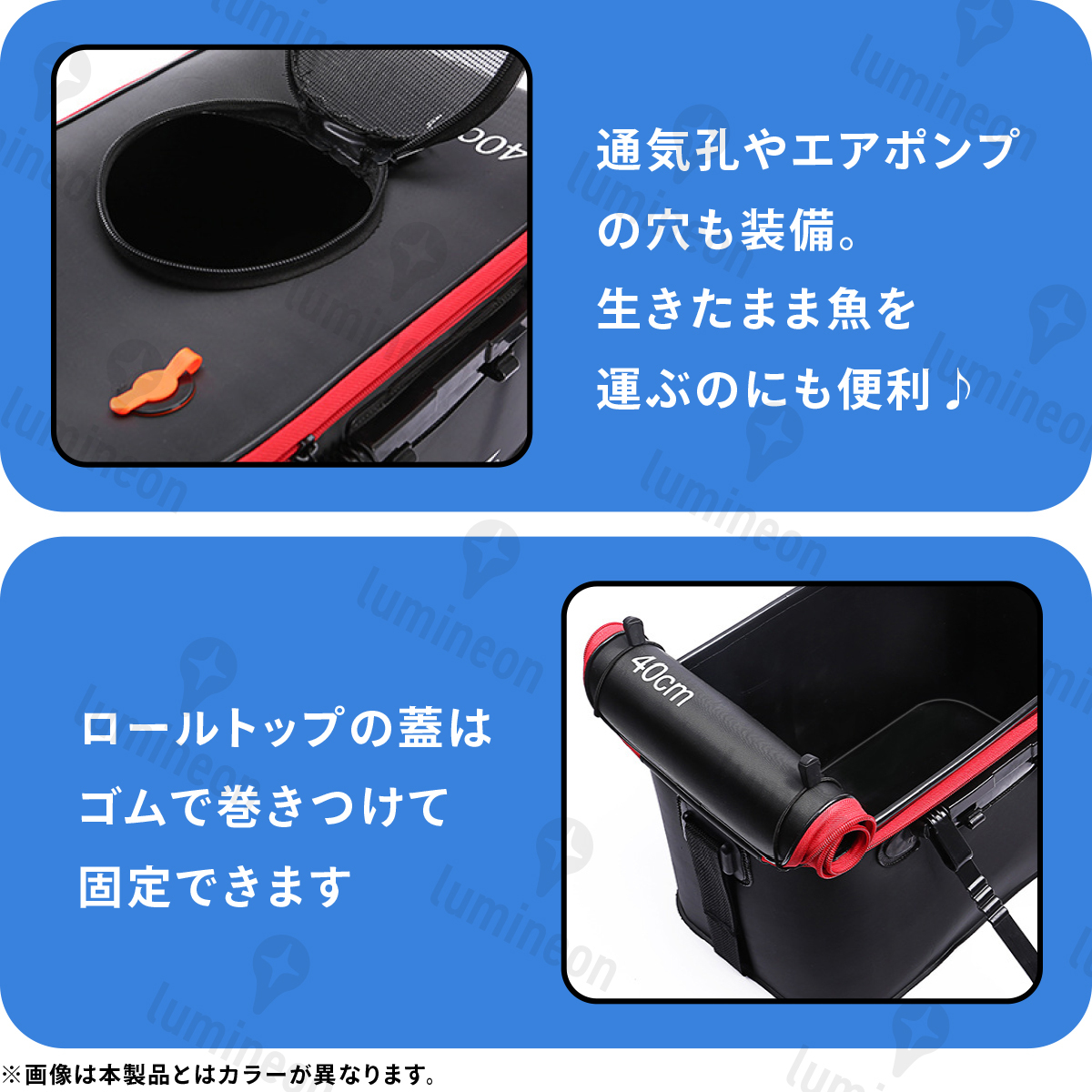 酸素ポンプ用穴や通気孔も備えているので魚を生きたまま入れてもOK。