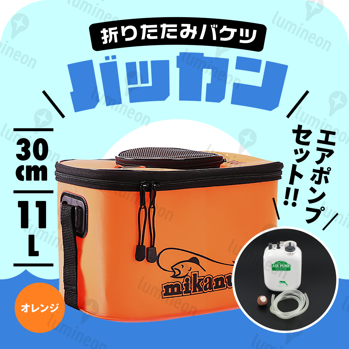バッカン 30cm 折りたたみ 釣り バケツ エアー ポンプ 付き エア フタ 水汲み バケツ 肩掛け ショルダー 袋 ホルダー 魚 大容量 g040da