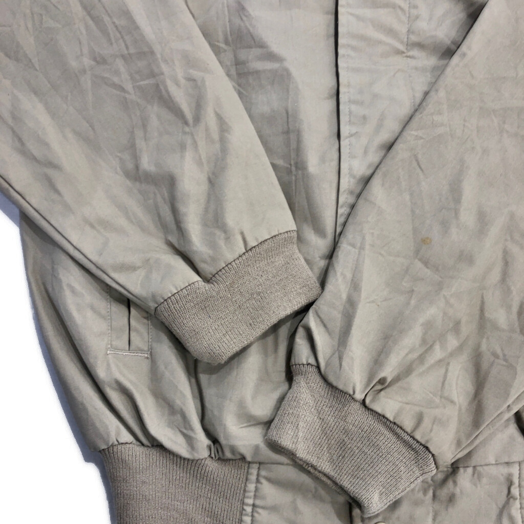 | 【商品管理番号】 V3437 【サイズ】 M 【実寸サイズ】 着丈:約67cm 身幅:約63cm 裄丈:約91cm 袖下丈:約56cm 【主な素材】 表地 : ポリエステル 裏地 : 13848 【色】 ベージュ 【仕様】 90年代 ダービージャケット 【状態】 汚れ:首元、袖、袖先、腹部 キズ:裾 特記事項:毛玉 | |||