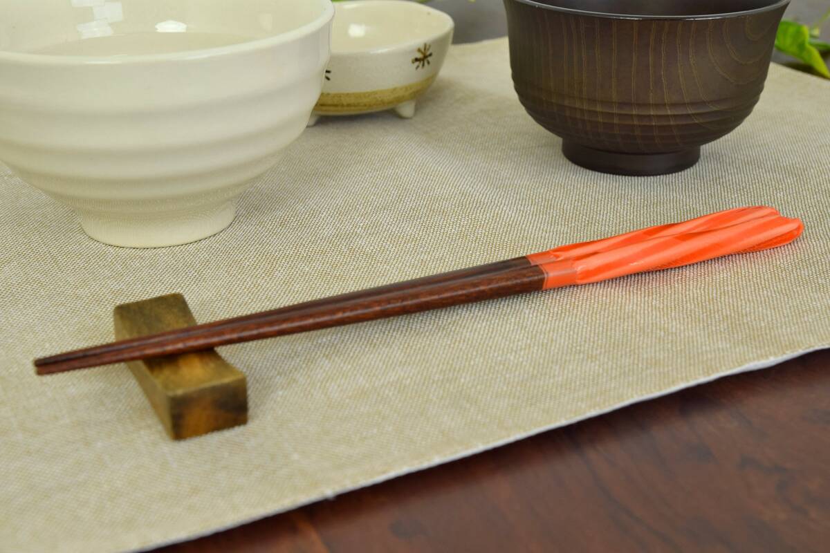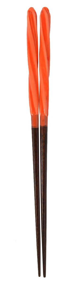 アオバ 箸 天然木 あめ玉ネジリ オレンジ 23cm