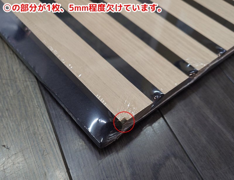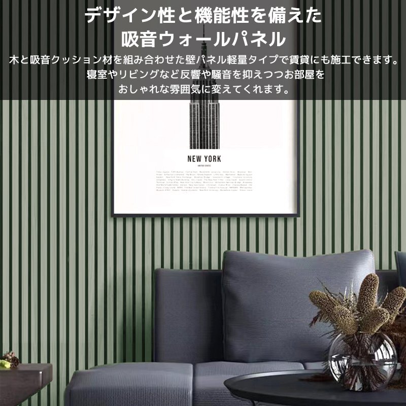 ・パネルが1枚、角が5mm程度欠けています。 上記理由の他にもキズ、汚れ等がある場合がございますが、ノークレームノーリターンでお願い致します。 ■デザイン性と機能性を備えた吸音ウォールパネル 木と吸音クッション材を組み合わせた壁パネル軽量タイプで賃貸にも施工できます。 寝室やリビングなど反響や騒音を抑えつつお部屋を おしゃれな雰囲気に変えてくれます。 ■冷暖房効率UP クッション層の無双にある空気孔が温度を保つため遮熱します。 冷暖房効率が上がり消費電力を軽減します。 ■静かで落ち着いた暮らし 近隣からの騒音が気になるベッドルーム等の壁面に設置することで近隣からの騒音を軽減し、静かで落ち着いた生活ができます。 ■自由にカット クッション材の部分はカッターで切ることができます。 木材の部分も柔らかく加工がしやすくノコギリを使ってカットすることが出来ます。 軽量タイプ クッション材が基盤のウッドパネルなので1枚あたりの重量が約2kgと軽量。 施工効率が良く女性でも手軽にDIYすることが出来ます。 ■商品詳細 カラー:ナチュラルウッド サイズ(約):高さ800mm、横305mm、奥行き22mm 重さ(約):1枚あたり2kg 素材:木材(MDF)、吸音材:ポリエステル 施工面積(約):1.44平方メートル |