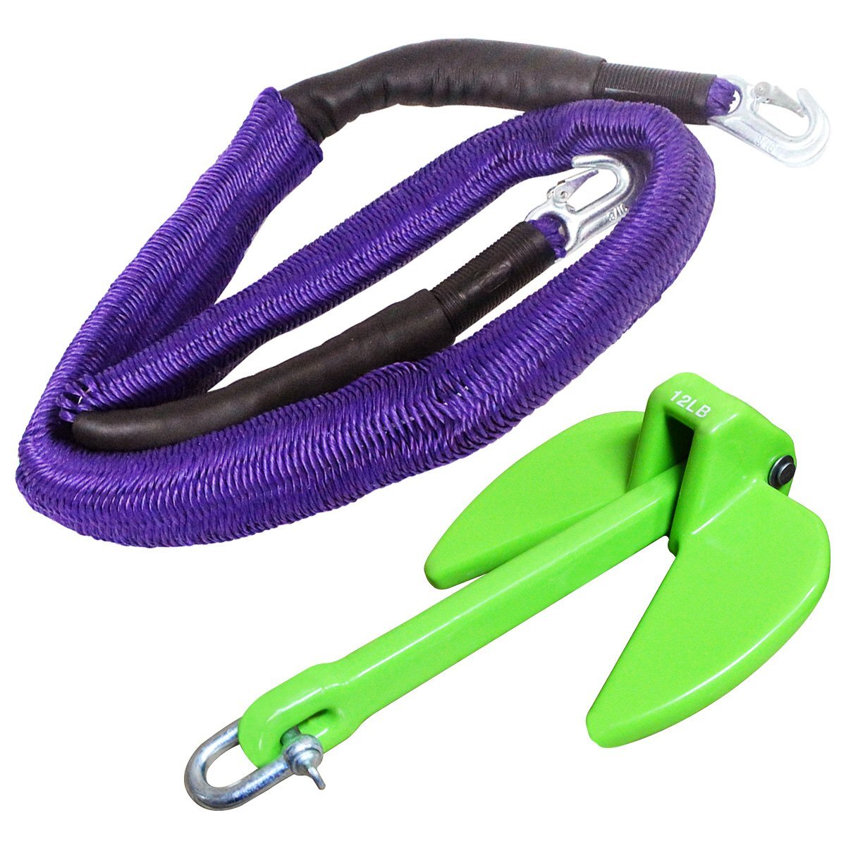 『伸縮ロープ/アンカーセット』爪型 アンカー 10LBS 4.5kg 緑 グリーン 6M フロート のびのび アンカー ロープ 紫